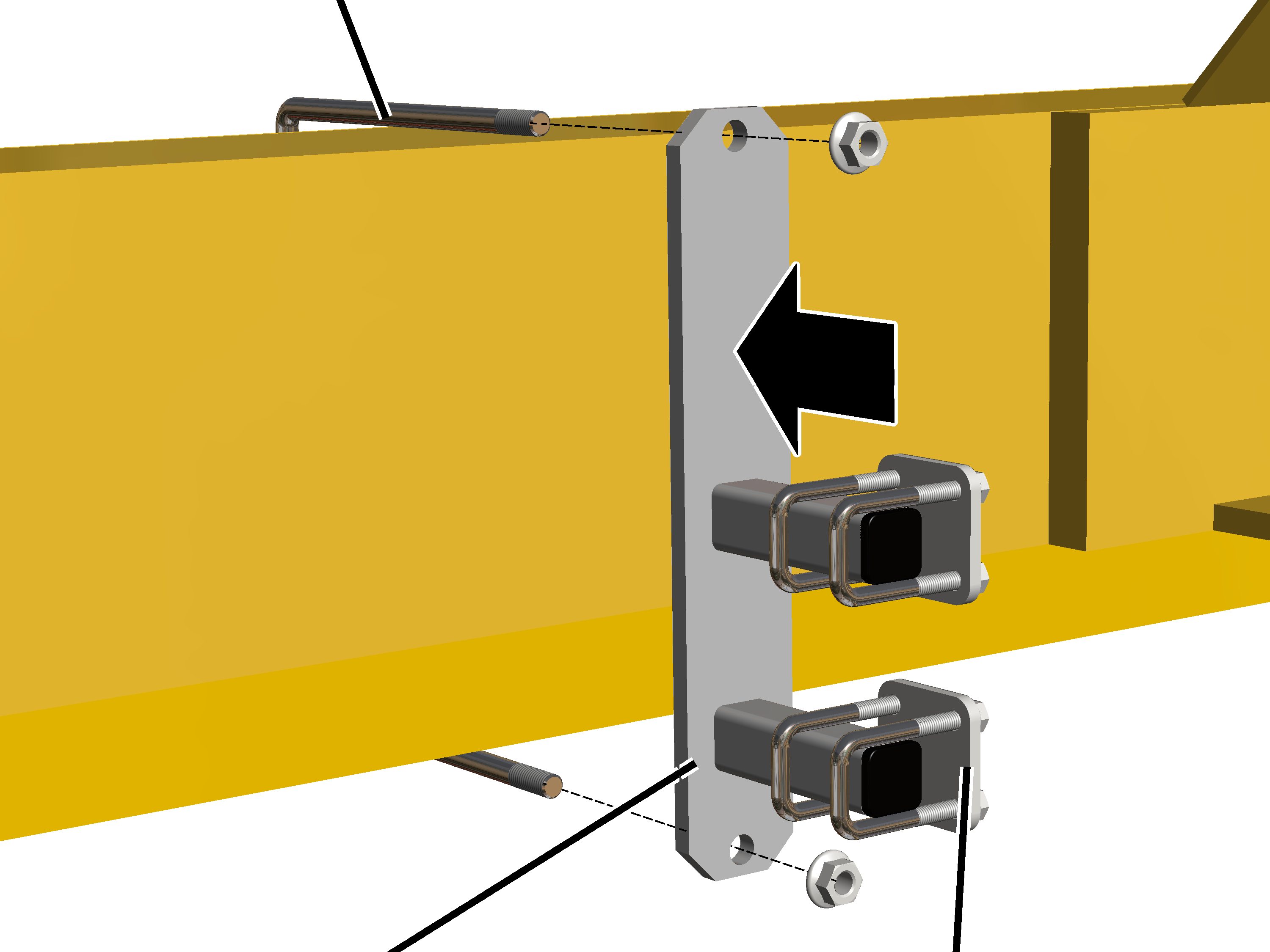 ─ Bei Distanzsensor Kranfahrt: Der Distanzsensor des Krans und der Reflektor für den Distanzsensor des Gegenkrans werden an einer gemeinsamen Halterung am Fahrwerksträger befestigt. Am Gegenkran ist die Anordnung von Distanzsensor und Reflektor demnach vertauscht. Die Laserstrahlen des Distanzsensors dürfen sich nicht überkreuzen.