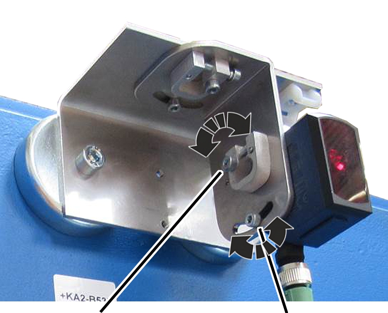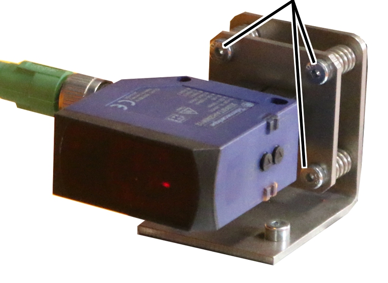 Distanzsensor mit der Grobeinstellung und Feineinstellung so einstellen, dass der Laserpunkt genau mittig auf dem Reflektor steht.