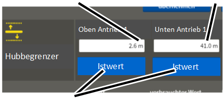 Eingabefeld Seillänge „Hubbegrenzer Unten Antrieb 1“ |