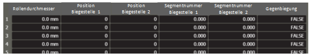 ● Bis zur Version 1.2.0.5 ist das Fenster „Umlenkrollen Ablegereife“ verfügbar, in dem Daten zu den einzelnen Umlenkrollen in Bezug auf die Berechnung der Ablegereife angezeigt werden. Diese brauchen für die Auswertung des Verschleißes nicht weiter berücksichtigt werden.