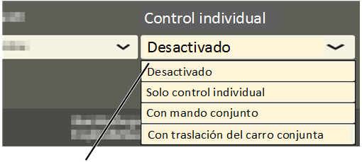 Con un emisor ABURemote de 'Joystick' con control individual (emisor con tres mandos maestros) se puede ajustar el modo del control individual en KranOS. Véase también el manual de producto "Joystick".