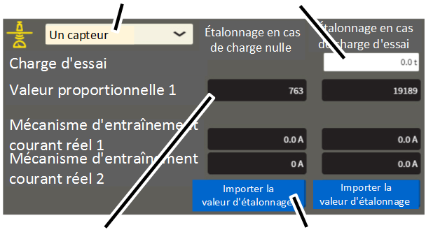 ─ Zone de texte (sur fond foncé) : Des valeurs sont affichées. Elles ne peuvent pas être modifiées.