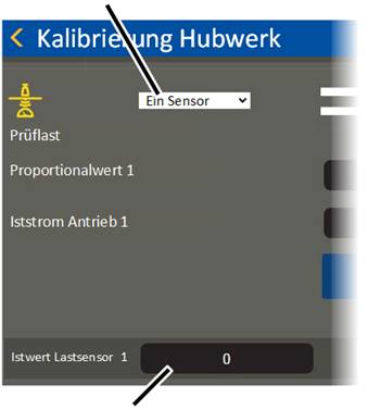The current values in the "Proportional value" and "Load sensor actual value" lines are measured values without measurement units, which are later used to calculate the load.