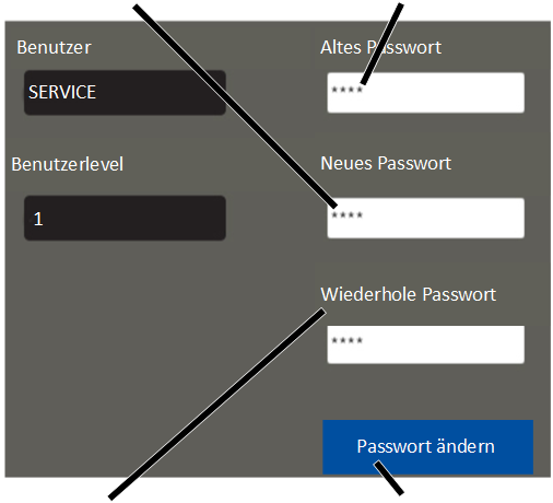 The default password "Service" for the user "Service" (user level [1]) can be changed.