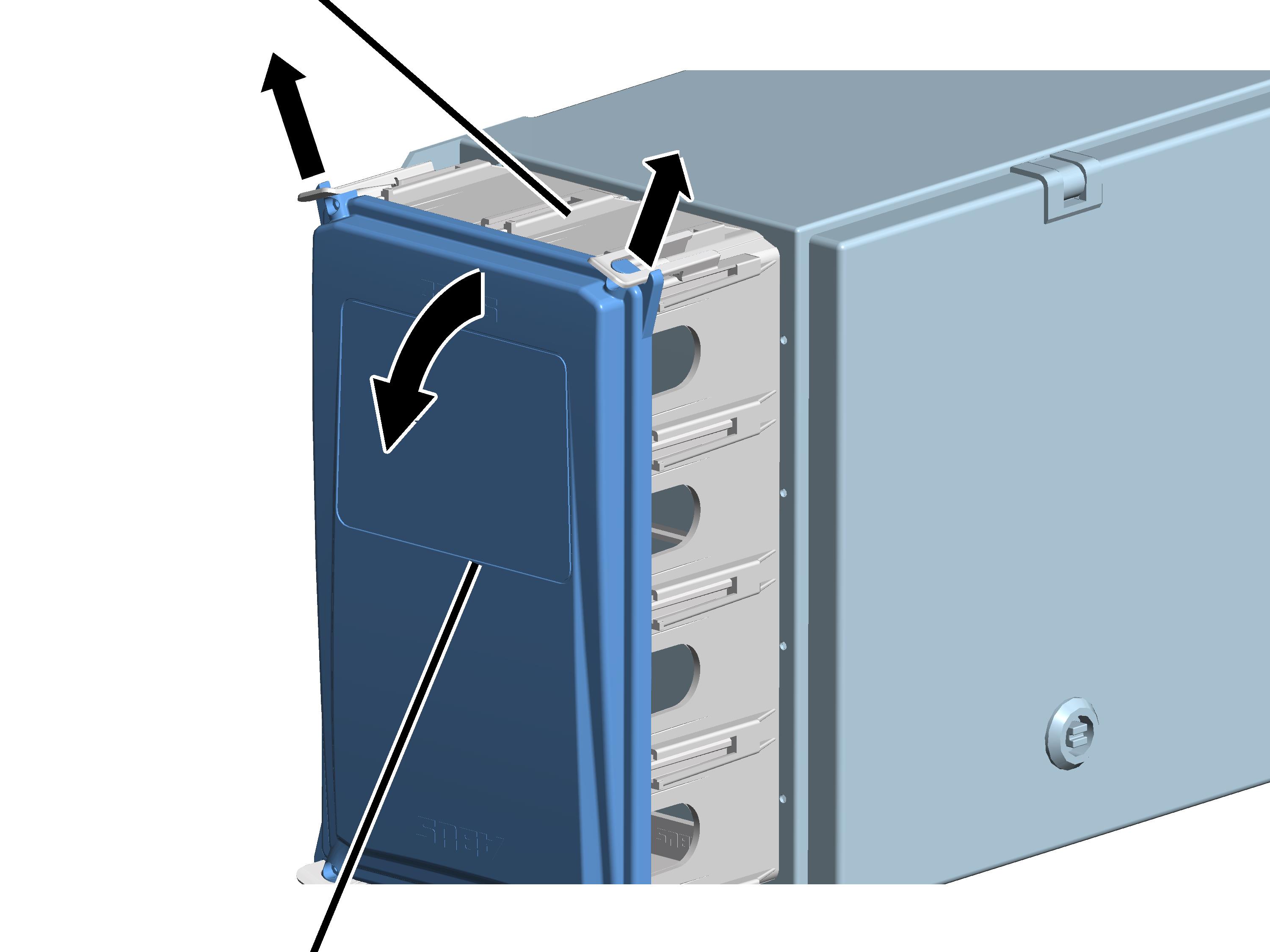 If the cover cannot be tipped downwards due to space limitations, its upper and lower clip fasteners can also be pressed slightly outwards and the cover can then be simply taken off.