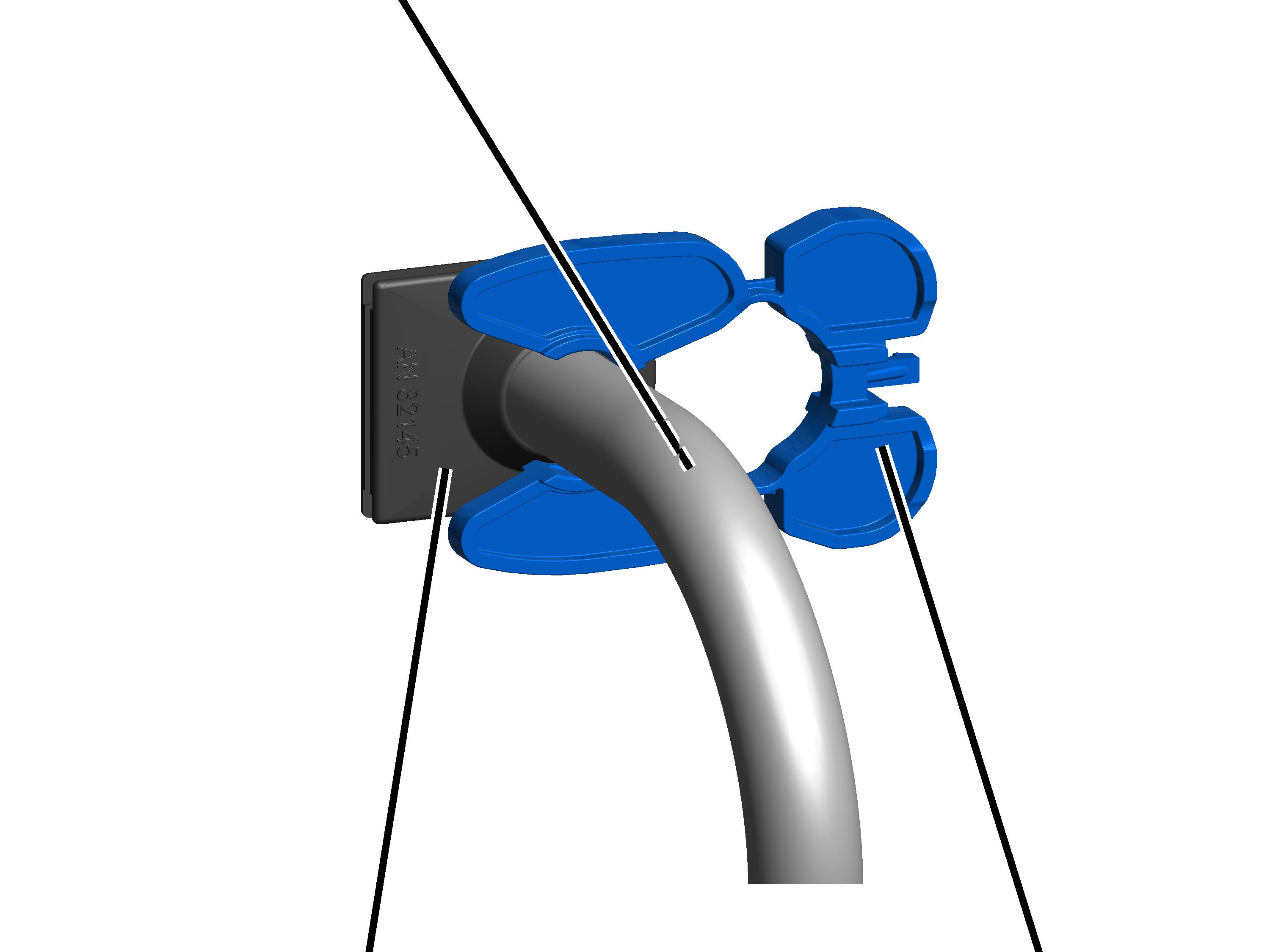 ● The cable tie is guided along the cable strain relief basic unit and comes out again at the other opening.