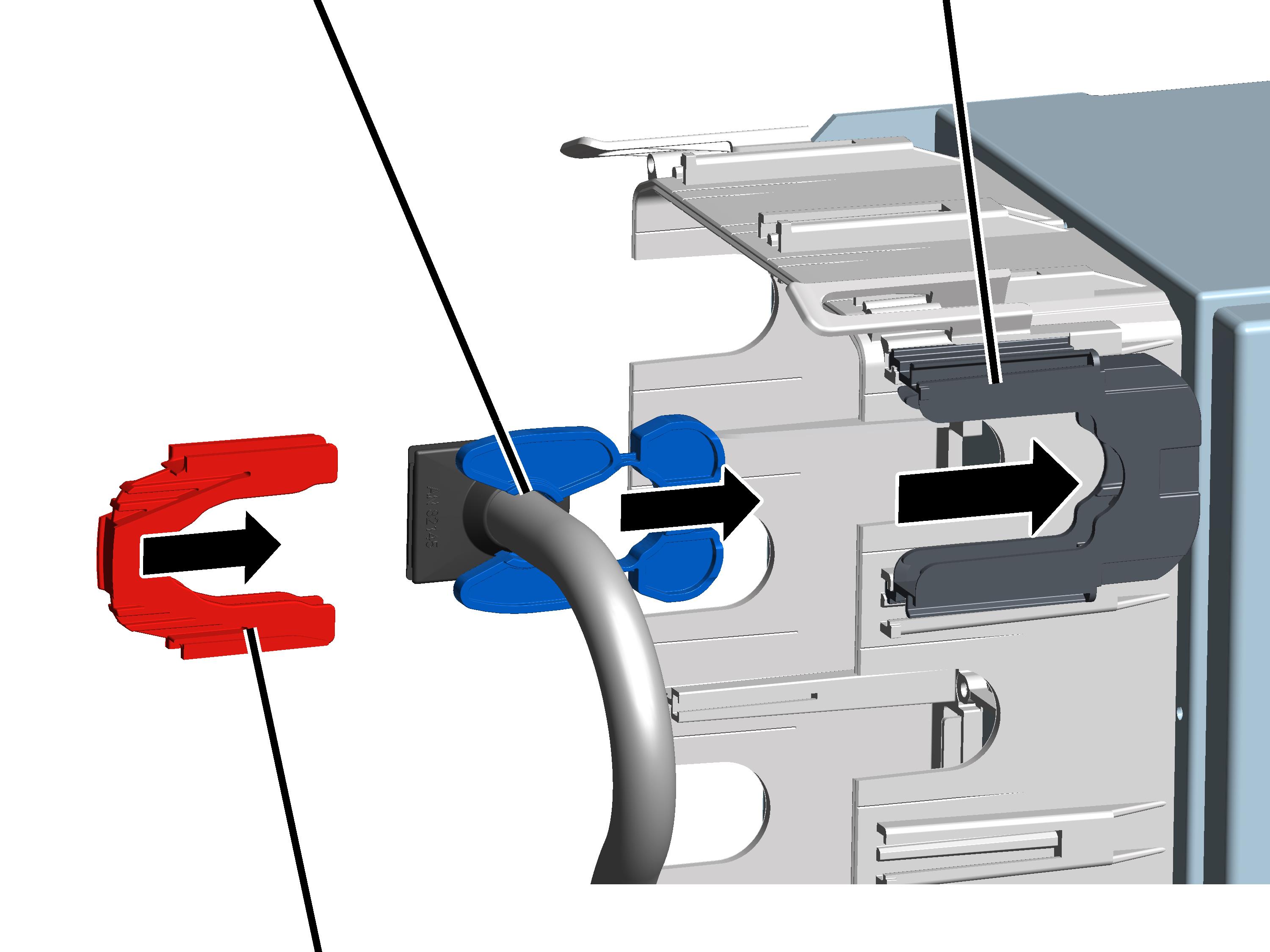 Push the cable duct into the rail between two cable strain relief base units (above in the figure).