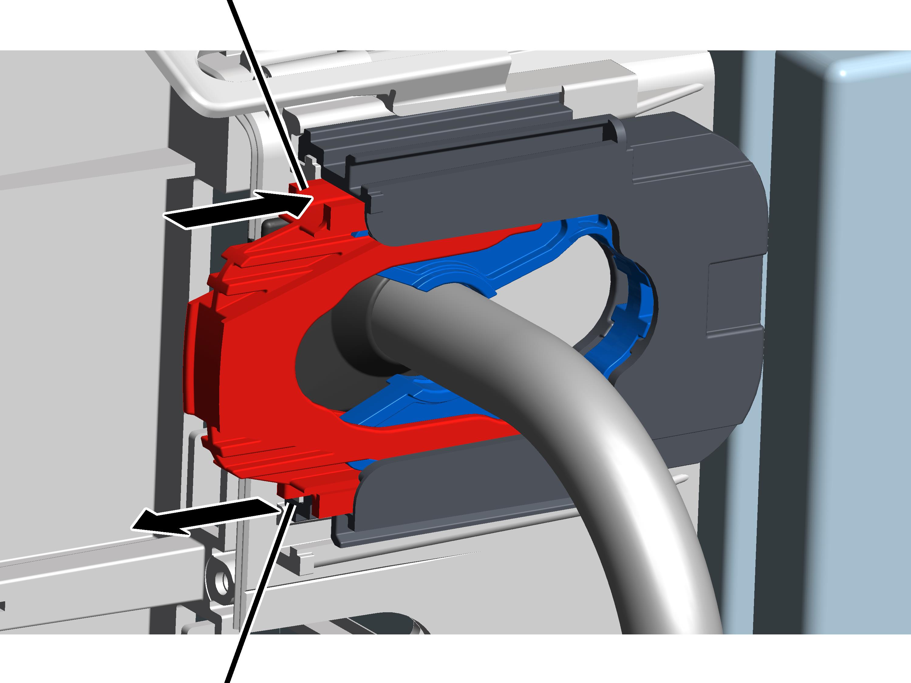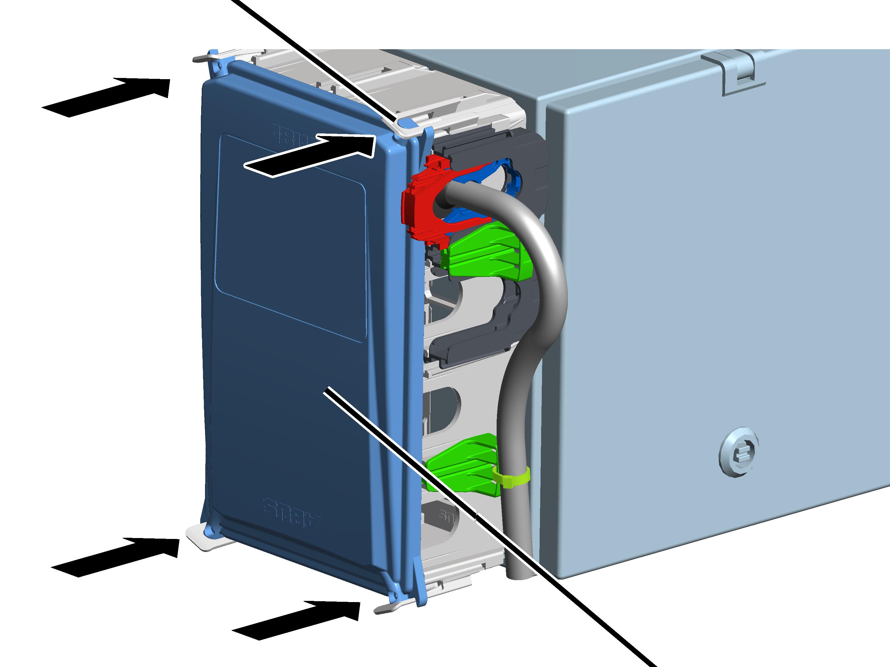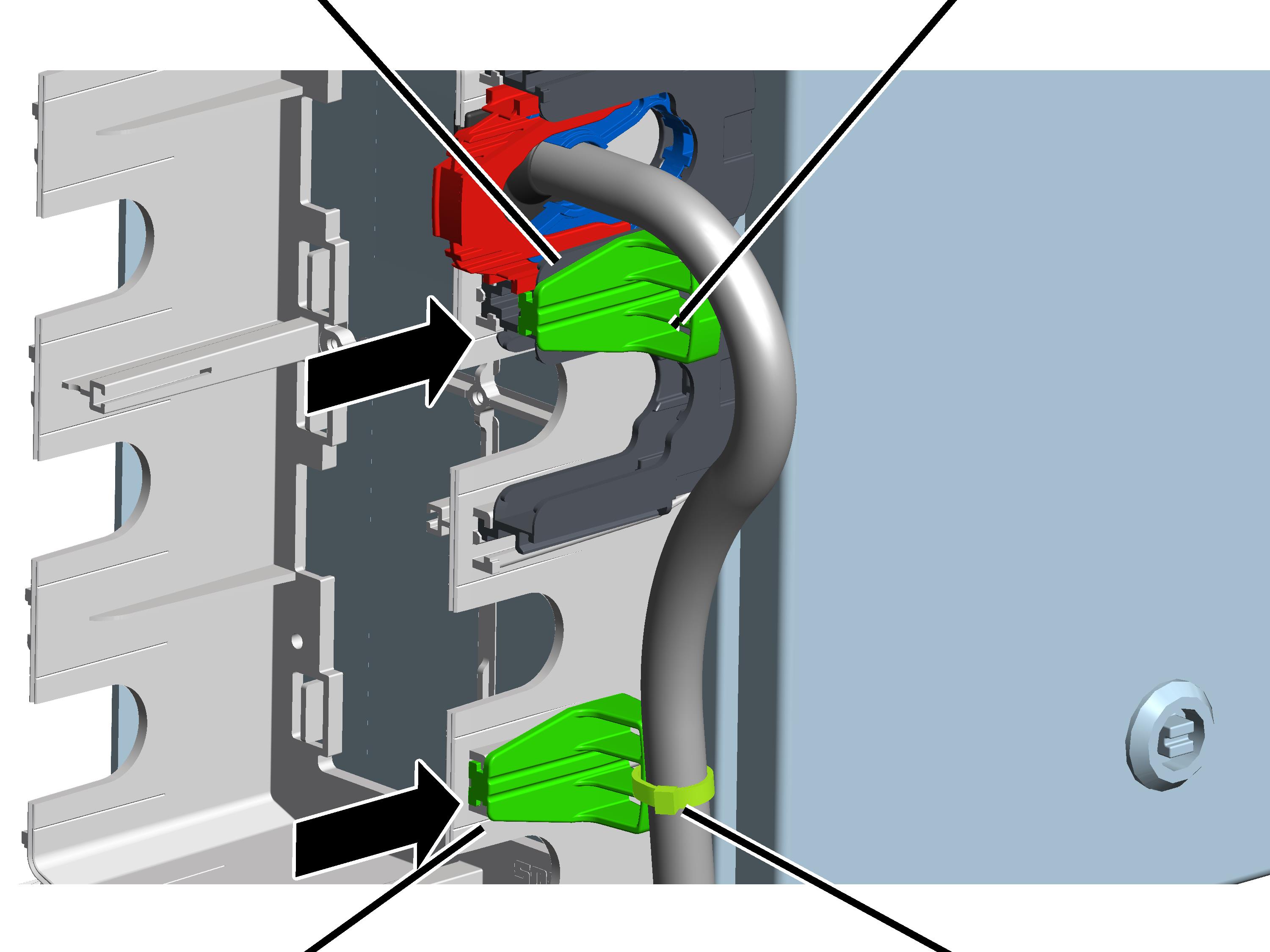 During assembly, the connection cables are placed through the cable entry housing into the panel and connected. All connection cables can be plugged in. The cable bushings in the cable entry housing serve as seals.