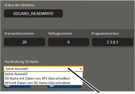 The functions "Overwrite SD card with data from PLC" and "Overwrite PLC with data from SD card" were used in earlier versions of ABUControl for transferring configuration files to the PLC or to the SD card.