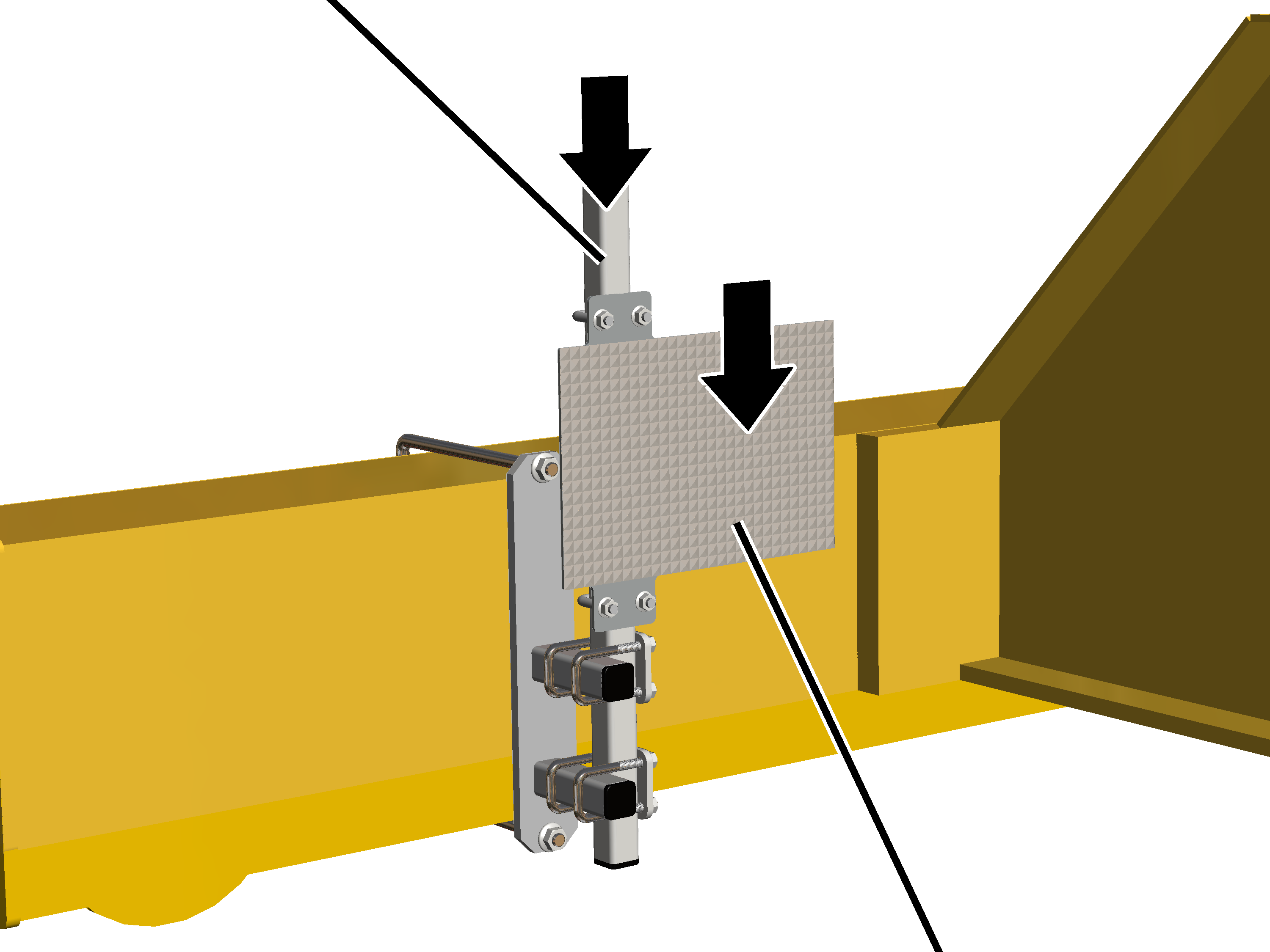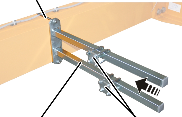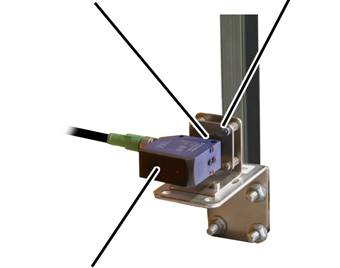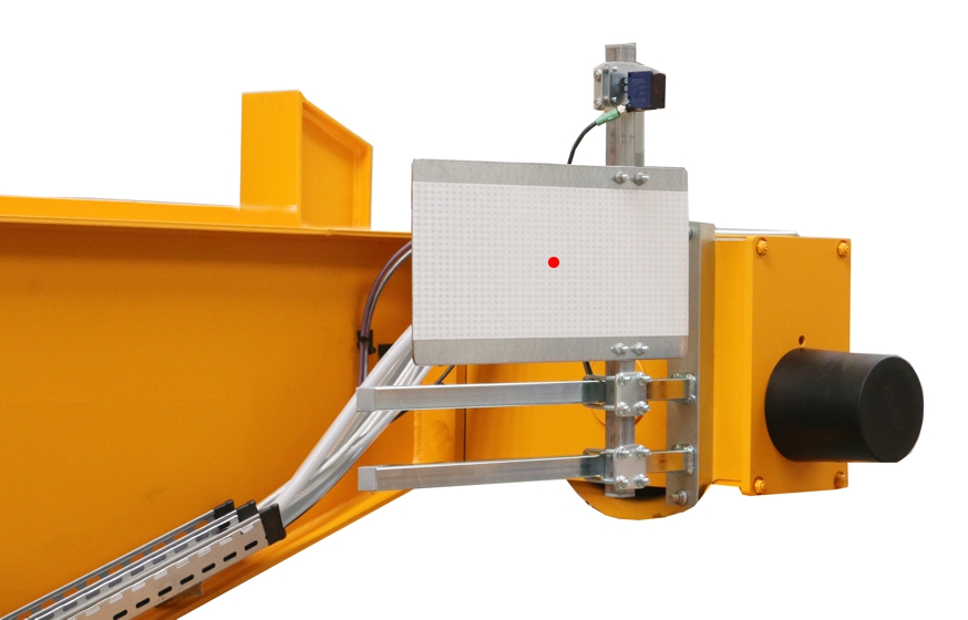 The distance sensor is either fastened with a mount on a square tube on the end carriage or attached to the wire rope hoist with a magnetic mount.
