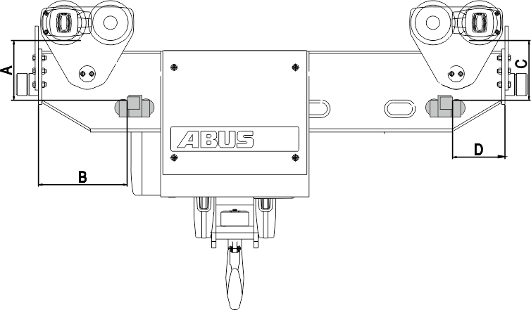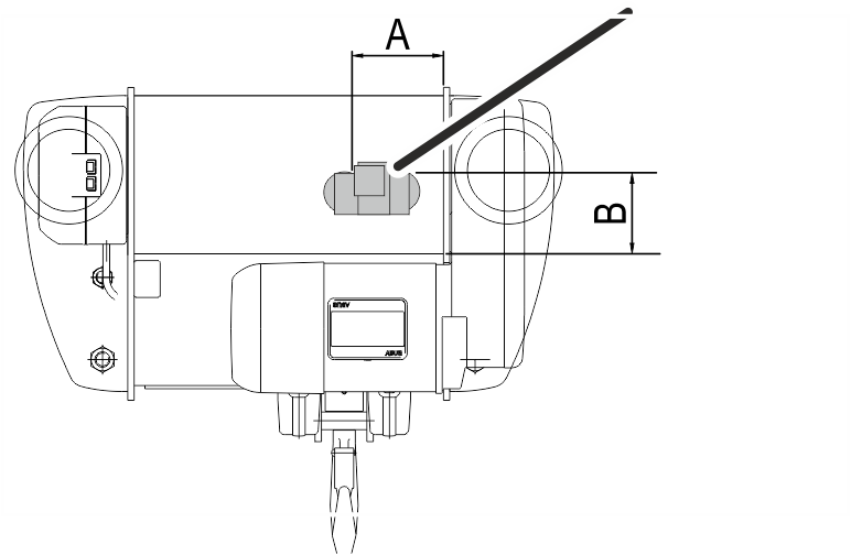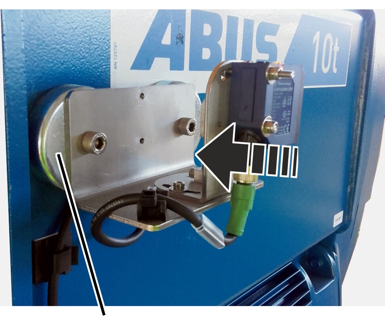 Assembly position of the magnetic mount on wire rope hoist U. Observe the different positions for the left and right distance sensor.