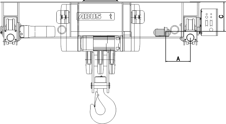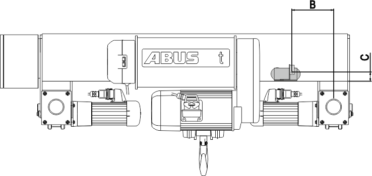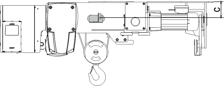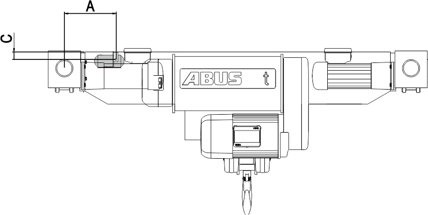 Assembly position of the magnetic mount on wire rope hoist S. Observe dimension C and fasten the distance sensor as centred as possible on the rope drive.