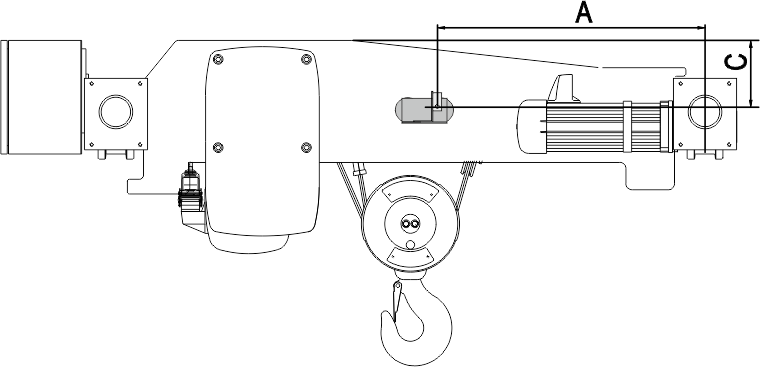 Assembly position of the magnetic mount on wire rope hoist D.