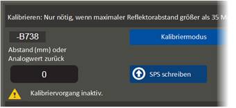 The upper area of the window "Crane travel distance sensors" or "Trolley travel distance sensors" is used to calibrate the distance sensor when the maximum distance to the reflector is greater than 35 metres. This is only required with older program versions of ABUControl in rare cases. This function is therefore deactivated in the current version.