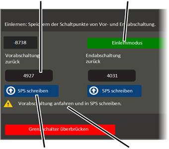 User "Abnahme" (commissioning) à "Crane travel" à "Crane travel distance sensors" |
