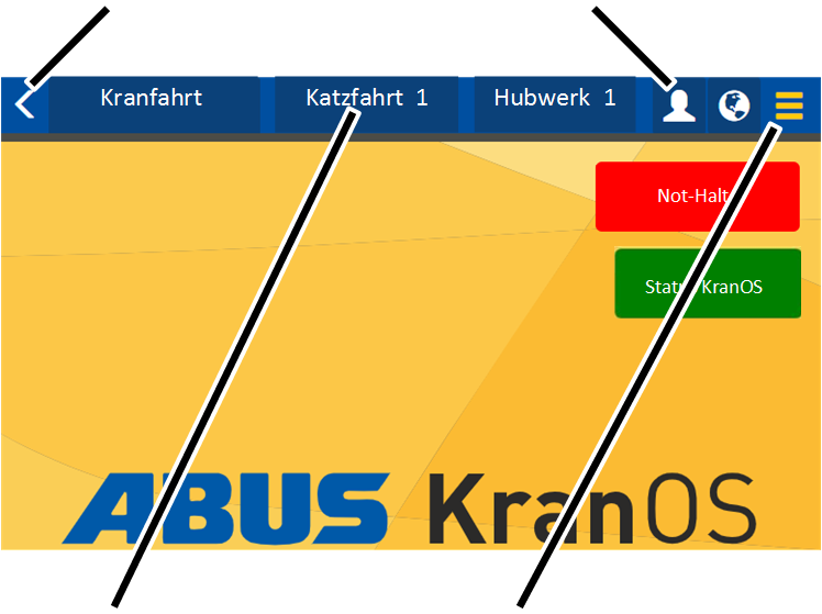 The window associated with each crane axis (crane travel, trolley travel, hoist) can be selected here. Only crane axes that are actually available on the crane are displayed.
