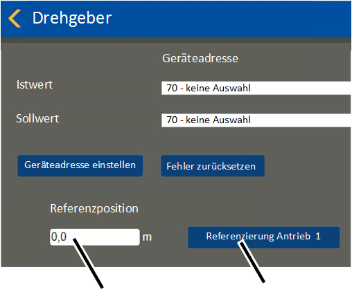 User "Service" or "Abnahme" (commissioning) à "Hoist" à "Absolute rotary encoder" |
