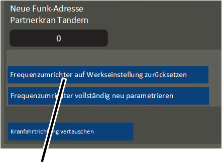 With this function, the measurement from the initial start-up of the crane at the commissioning is deleted and the parameters are transferred again. The scope of the parameter transfer is the same as in the section Parametrizing frequency converters [1] [2].