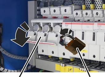 The fuse isolating link in the crane control fulfils the function of the circuit isolator. The entire crane can thus be disconnected from the current to the greates possible extent.
