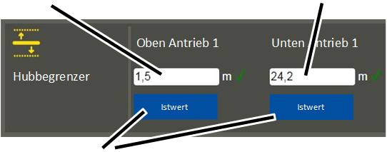 Input field for wire length, "Hoist limiter Top drive 1" |