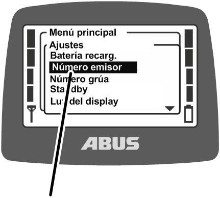 Los números de emisor y de grúa pueden colocarse en adhesivos en la grúa y en el emisor. ABUS dispone para ello de etiquetas especiales. Véase Servicio técnico de ABUS.