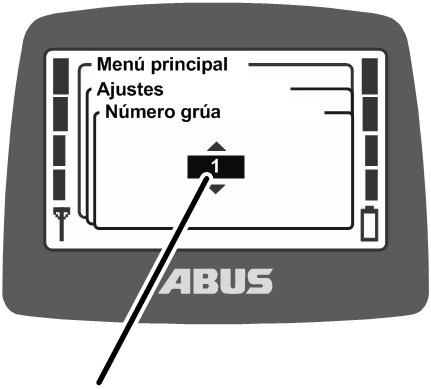 Aquí se introducen el número del emisor y el número de la grúa. Sirven para identificar y asignar de forma unívoca la grúa y el emisor. No tienen ninguna función técnica ni función en ABURemote, sino que se indican en varios sitios solo para el gruísta.