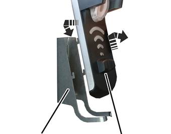 de carga en los ganchos del soporte de pared y presionar hacia abajo.