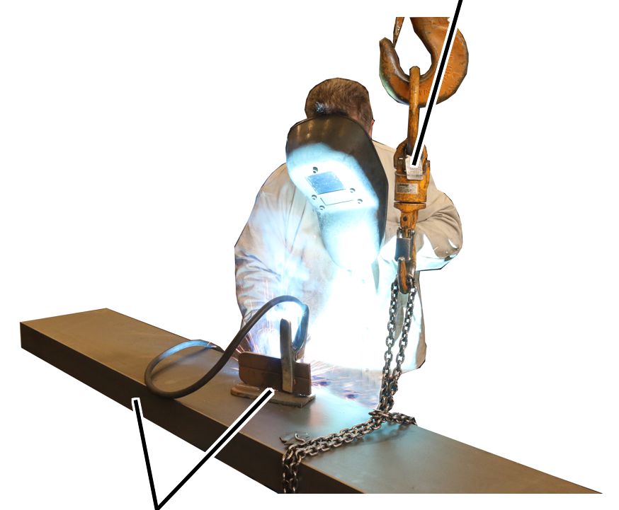 Cuando se utilice la grúa para sujetar componentes en los que se van a realizar soldaduras, es imprescindible utilizar un elemento de sujeción aislado (como un descargador de torsión aislado, una correa de material no conductor, etc.). Caso contrario, la corriente de soldadura podría fluir por la grúa y dañar el mando eléctrico, los cables y los cojinetes. | ||||||