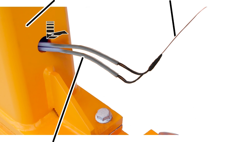The connection cables for the signal lamp and light barriers of the obstacle detection sensor are pulled down through the A-frames from above by means of two draw wires. The connection cables for the light barriers and the signal lamp should be pulled simultaneously through the A-frame.