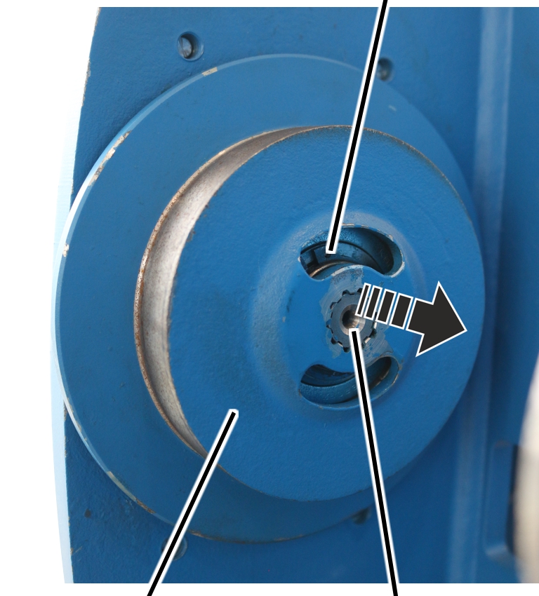 Falls vom Laufrad in Richtung des Hauptträgers zu wenig Platz für die Demontage ist, müssen die selbstsichernden Muttern am Spannbolzen des Katzrahmens gelöst werden, damit der Seilzug unter den Untergurt abgesenkt werden kann und die Laufräder frei zugänglich sind.