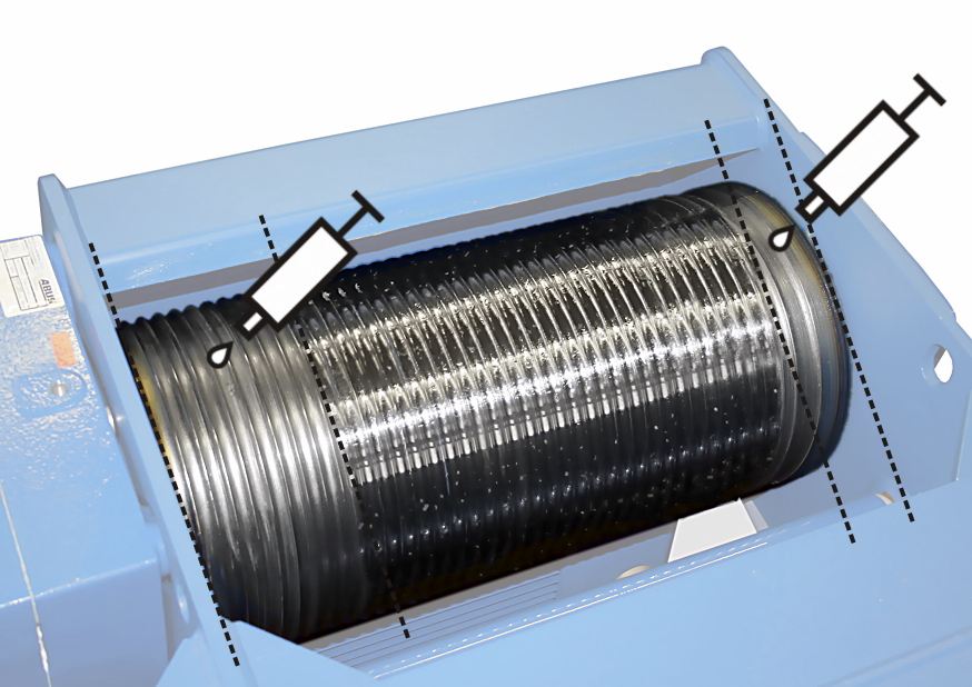 Für Details siehe Seiltrommel reinigen und schmieren.
