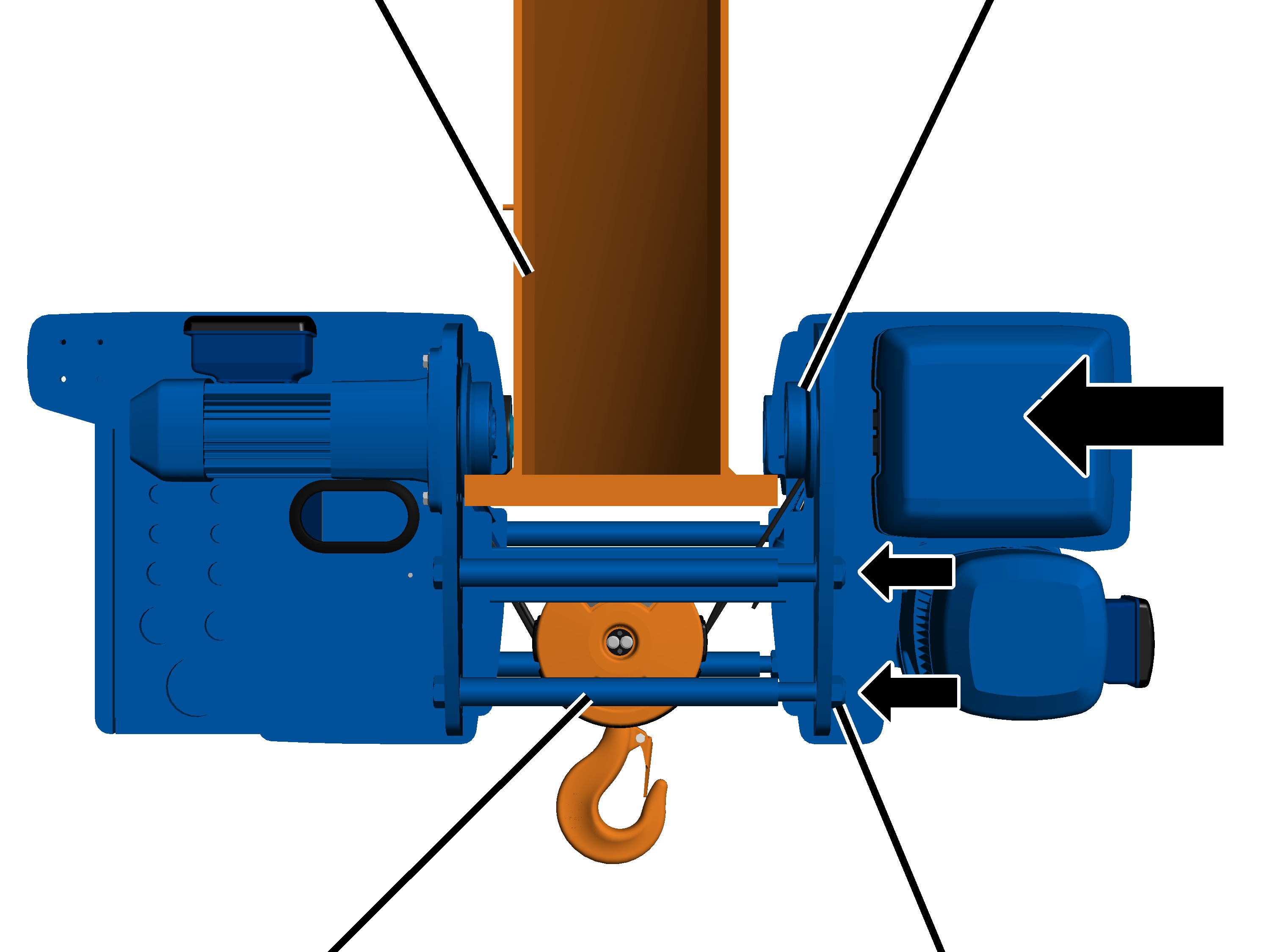 Wenn der Hauptträgeranschluss oder die Einschienenkatzbahn nicht verschlossen ist, kann der Seilzug auf den Untergurt geschoben werden.
