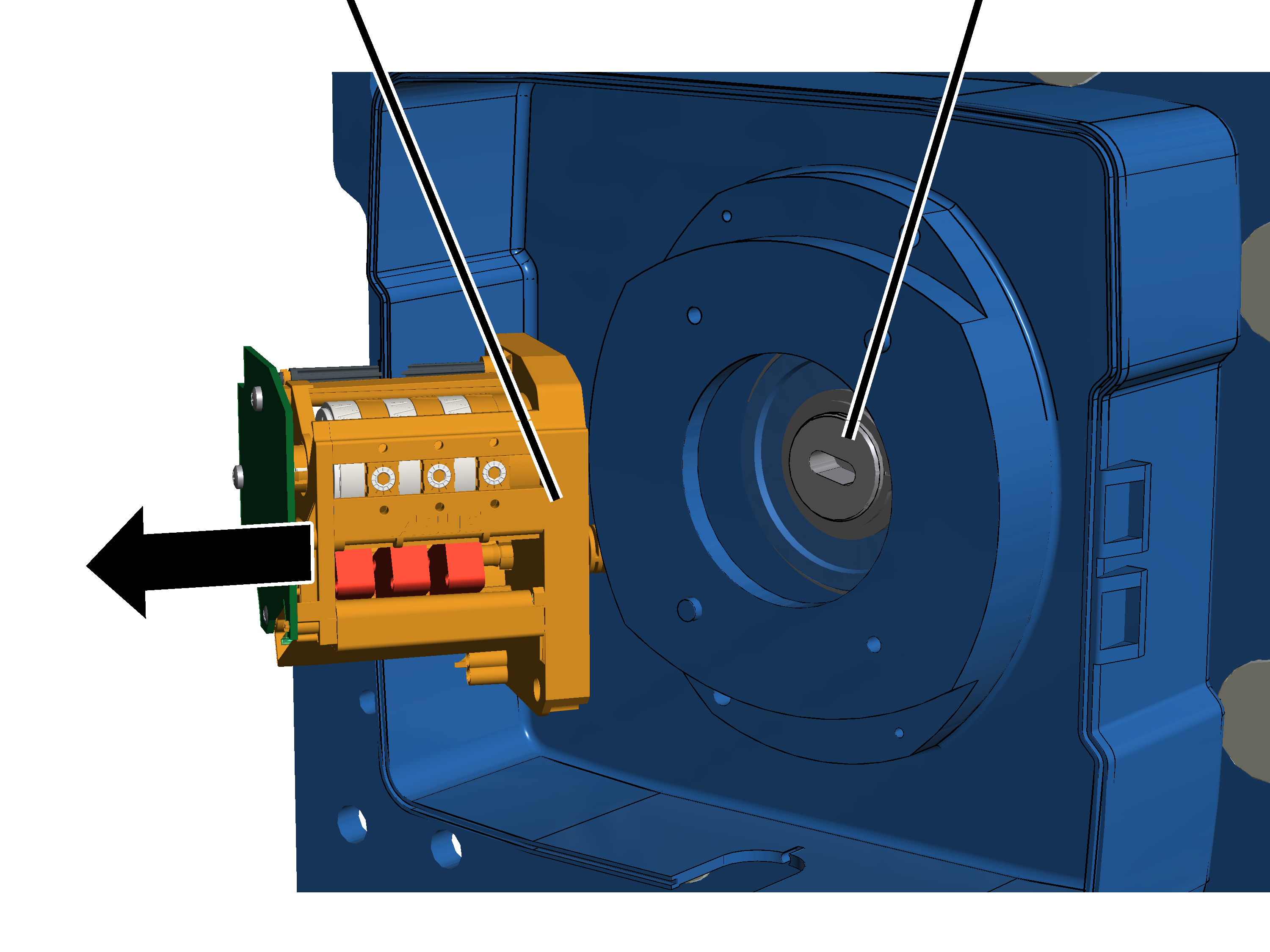 coincida con el orificio largo en la brida del cojinete del tambor de cable.
