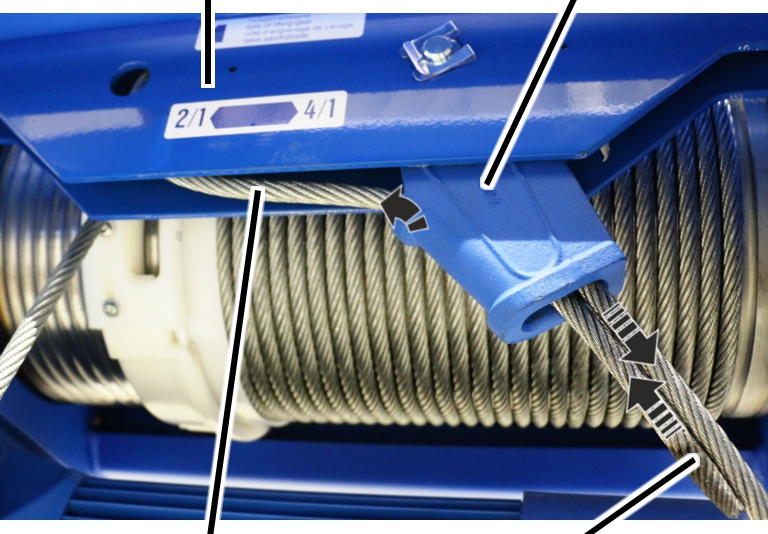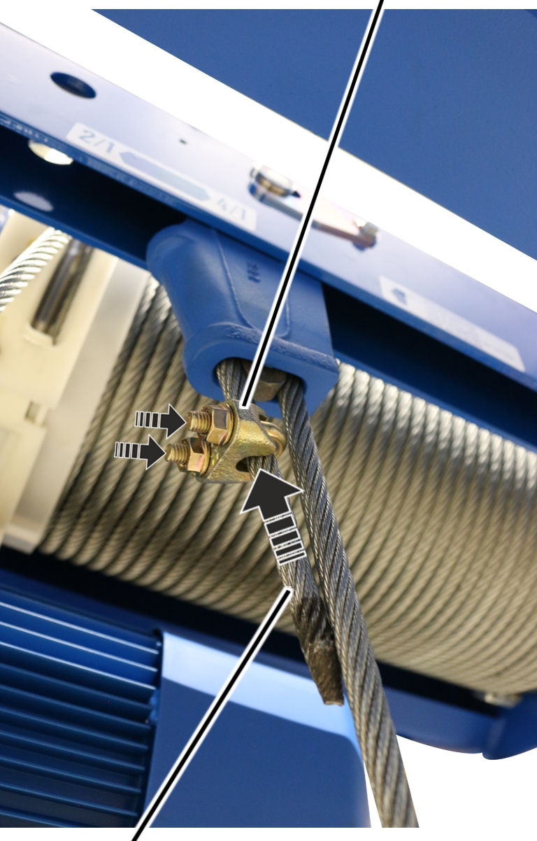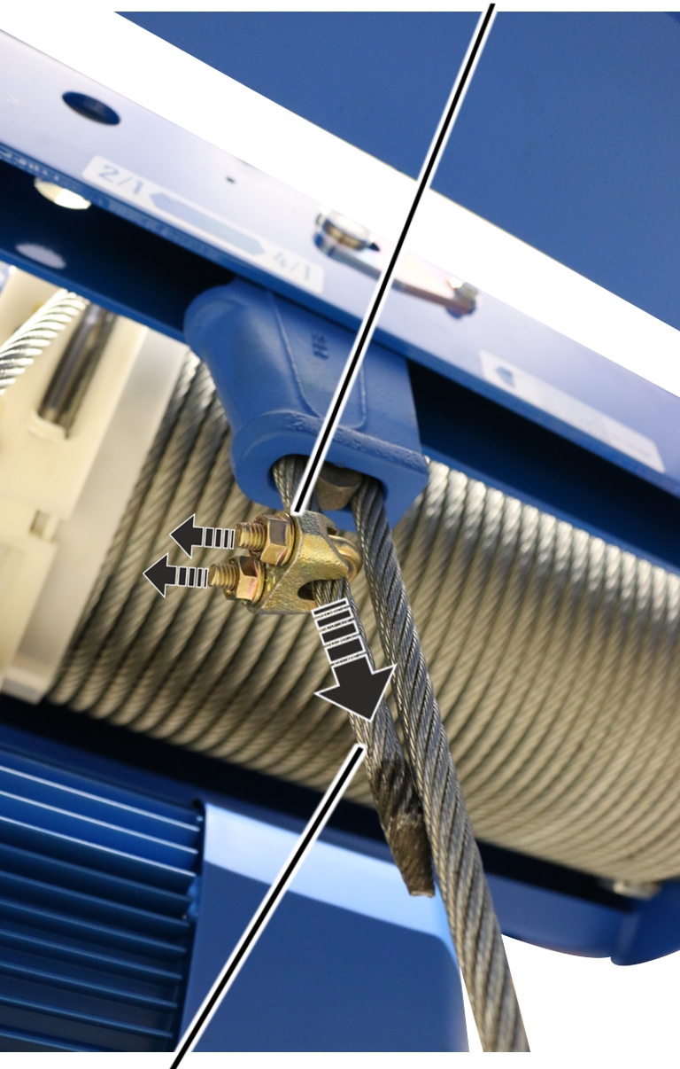 ─ Con cables a partir de un diámetro de 11 mm, el cambio de cable deberá ser realizado por dos personas.