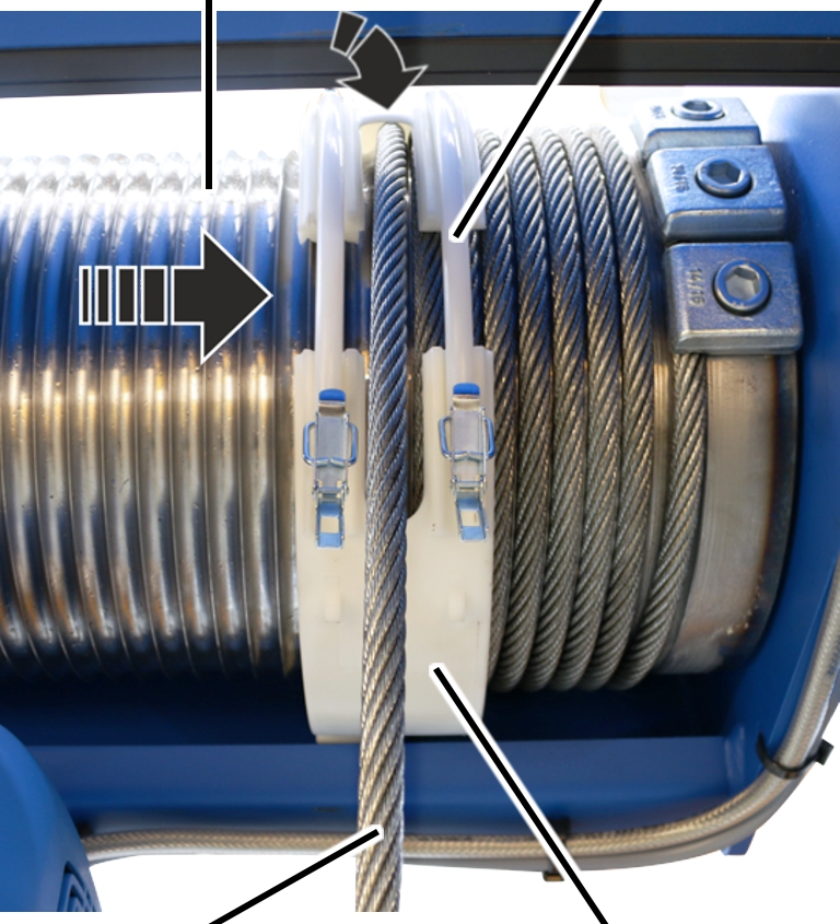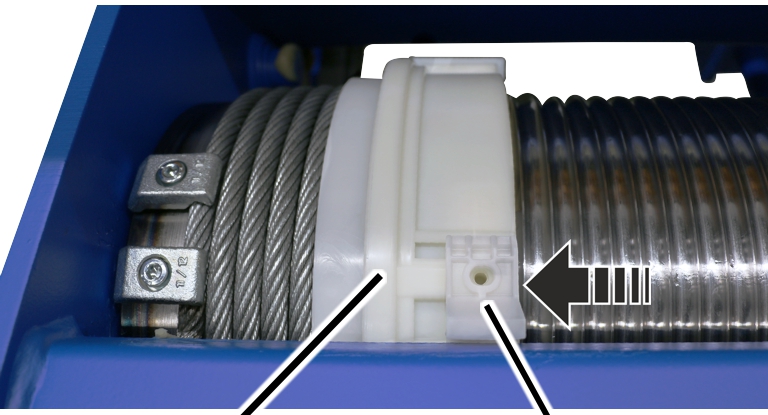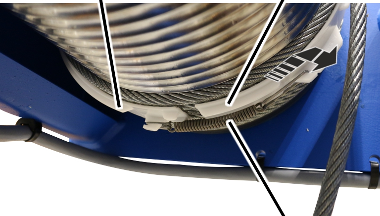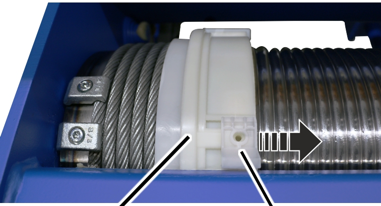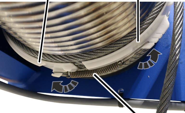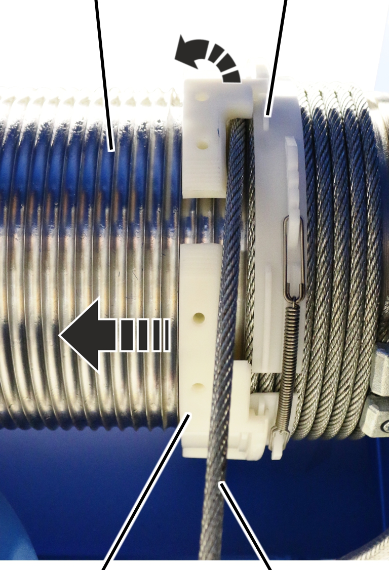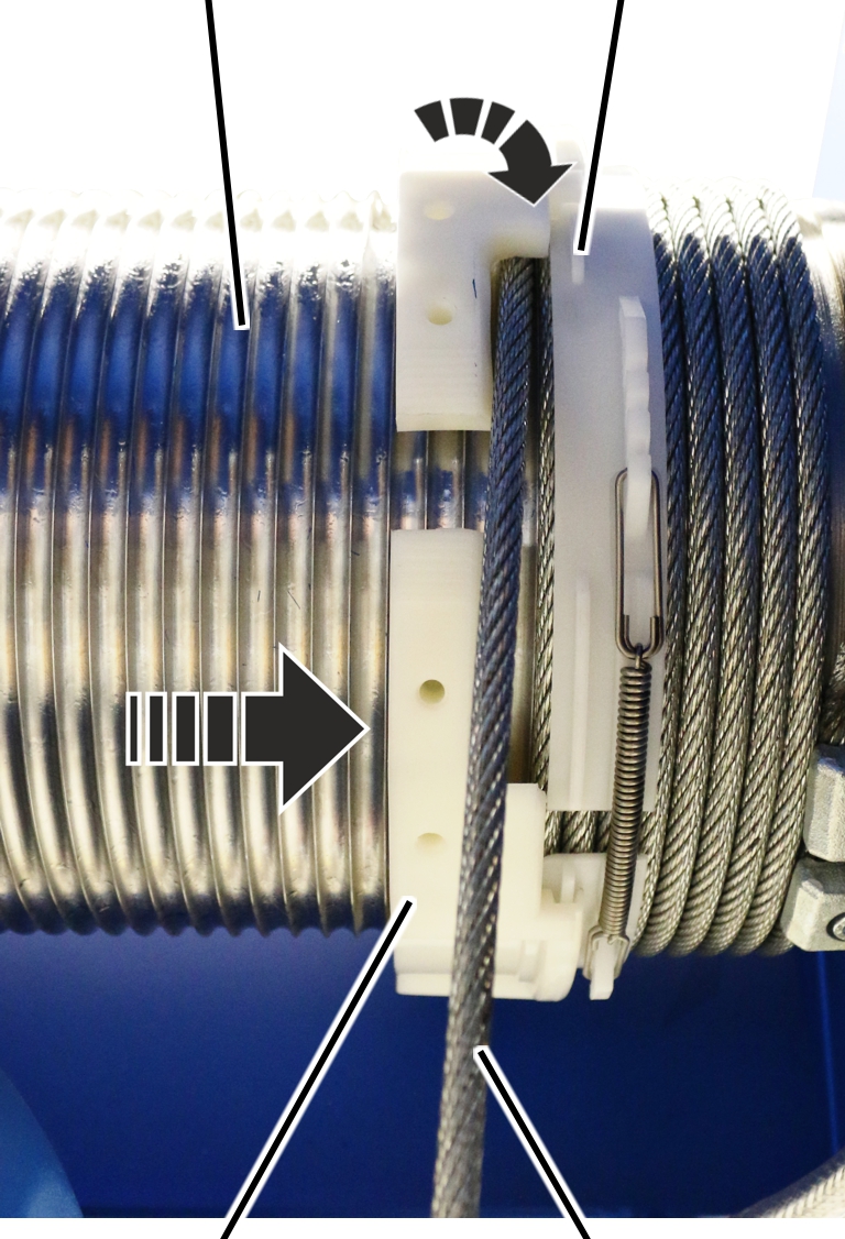 ● El anillo de guía de cable puede girarse ahora libremente sobre el tambor.