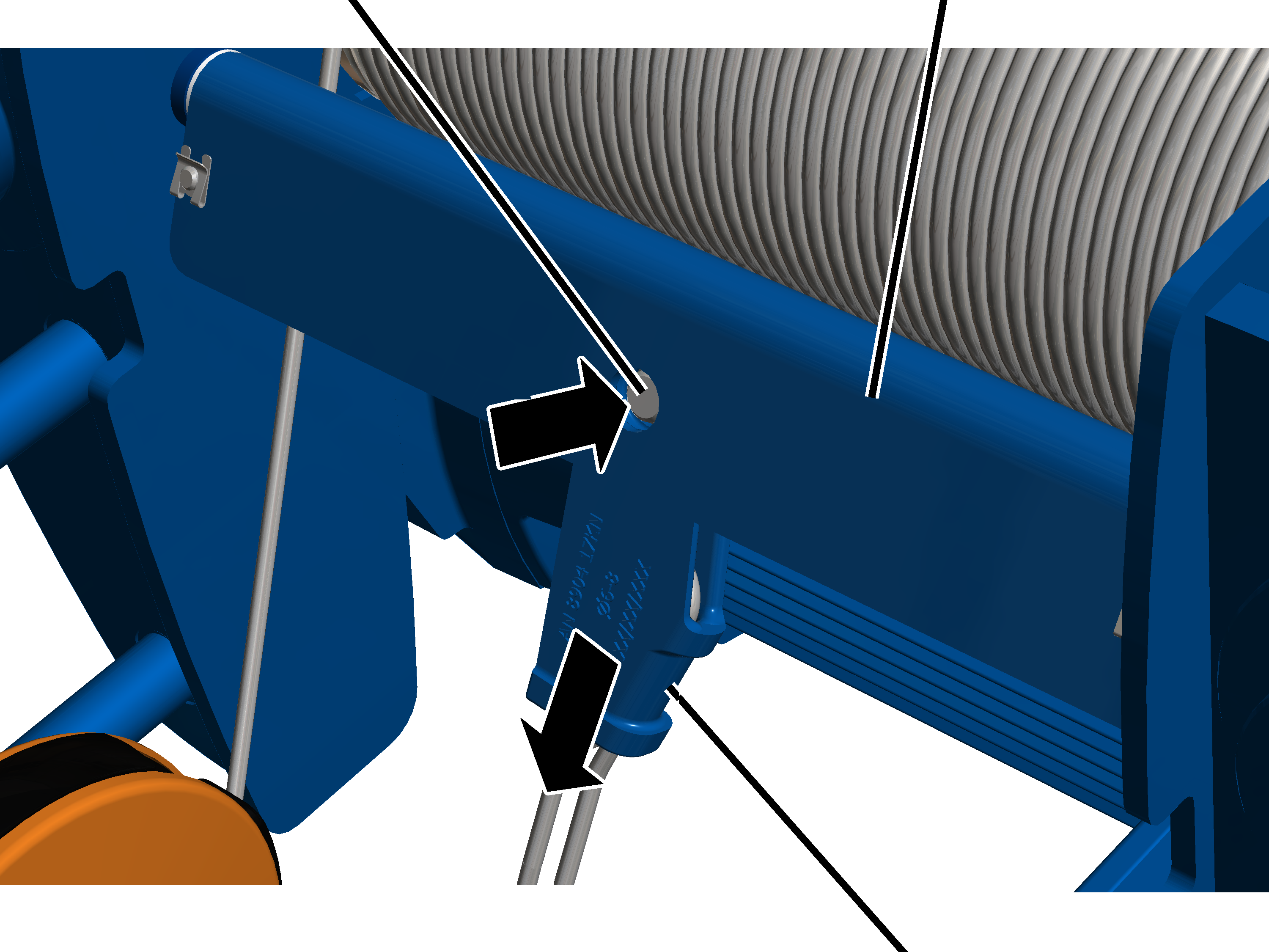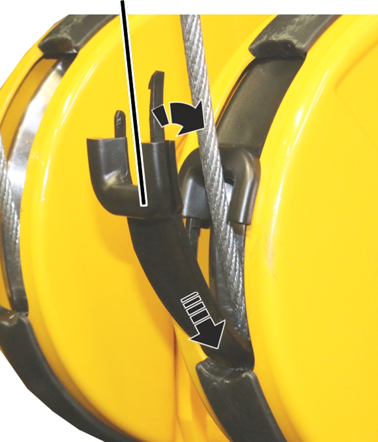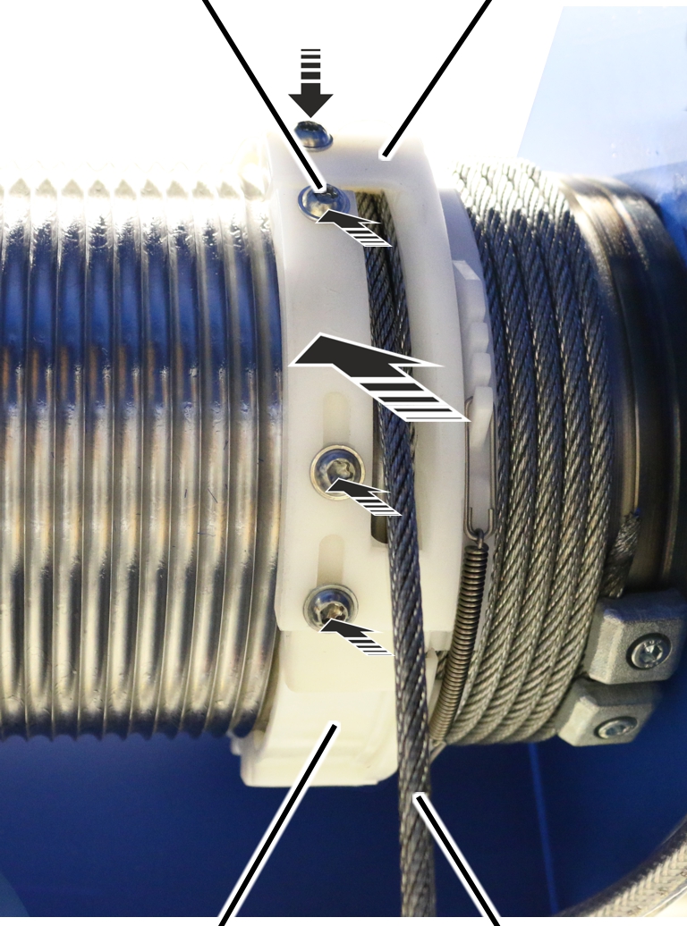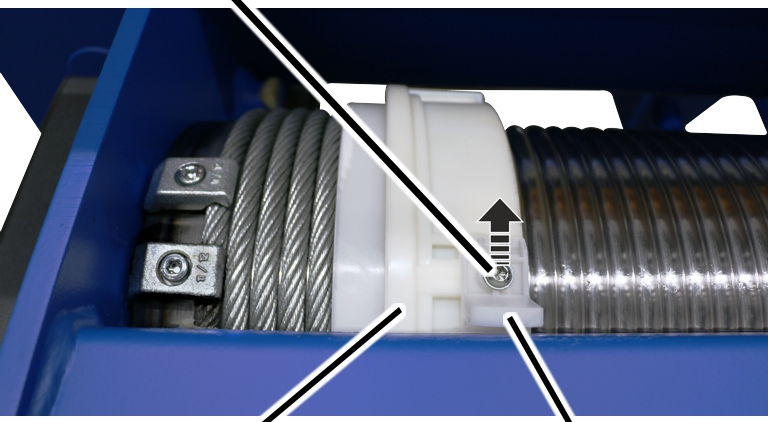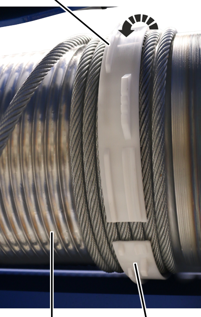 ● El anillo de guía de cable puede girarse ahora libremente sobre el tambor.