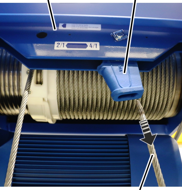 El cable del polipasto es un cable especial con una alta resistencia a la rotura. Alcanza una vida útil bastante mayor que la de un cable normal. Por ello se deben utilizar exclusivamente cables originales de ABUS.