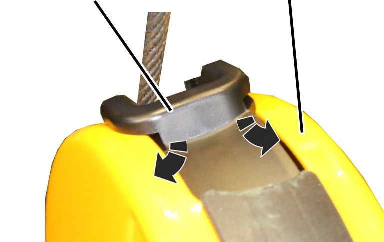 El protector del cable en la trócola se daña cuando se extrae el cable rápidamente de la trócola rozando el protector. Si hay que renovar el protector, deberá desmontarse primero.