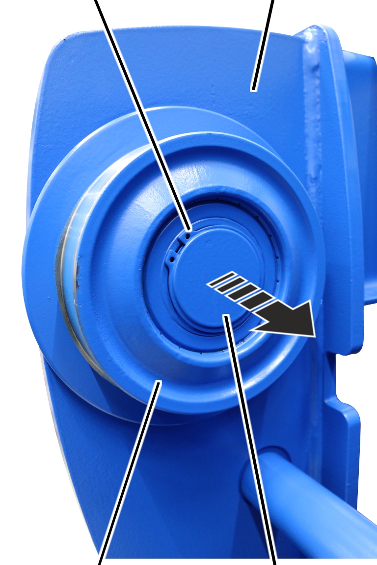 Si desde la roldana en dirección a la viga principal no hay espacio suficiente para el desmontaje, se aflojarán las tuercas autoblocantes del perno de sujeción del bastidor del carro para que el polipasto de cable pueda ser bajado por debajo de la cabeza inferior y las roldanas queden accesibles.