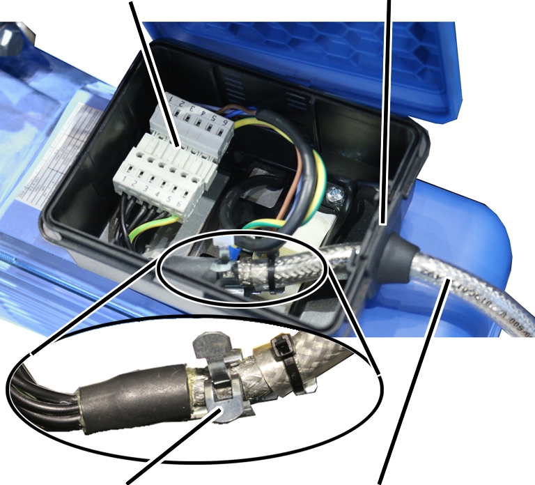 Fijar el cable de conexión con bridas a la pinza del apantallado.