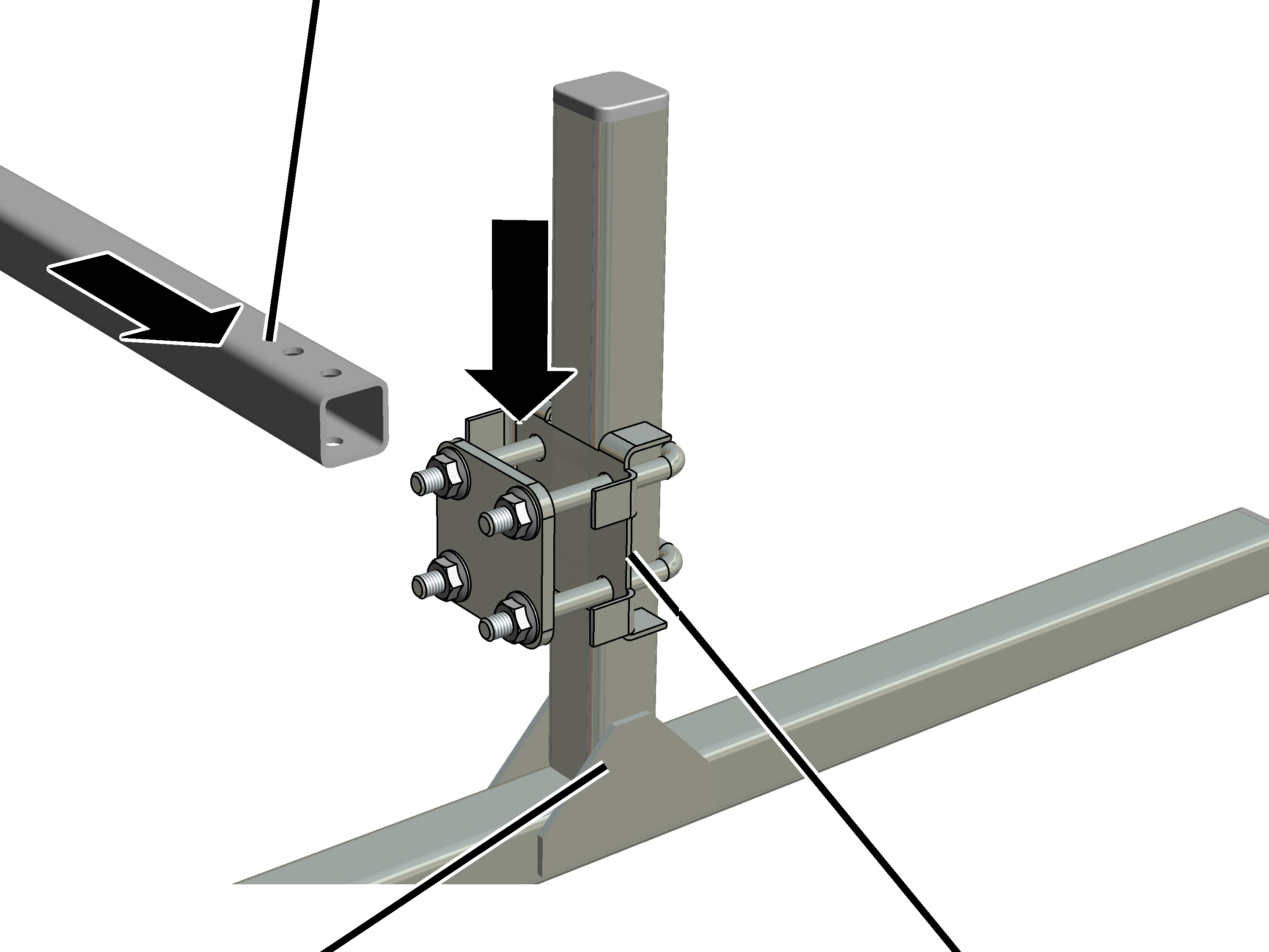 senkrechte Quadratrohr stecken.
