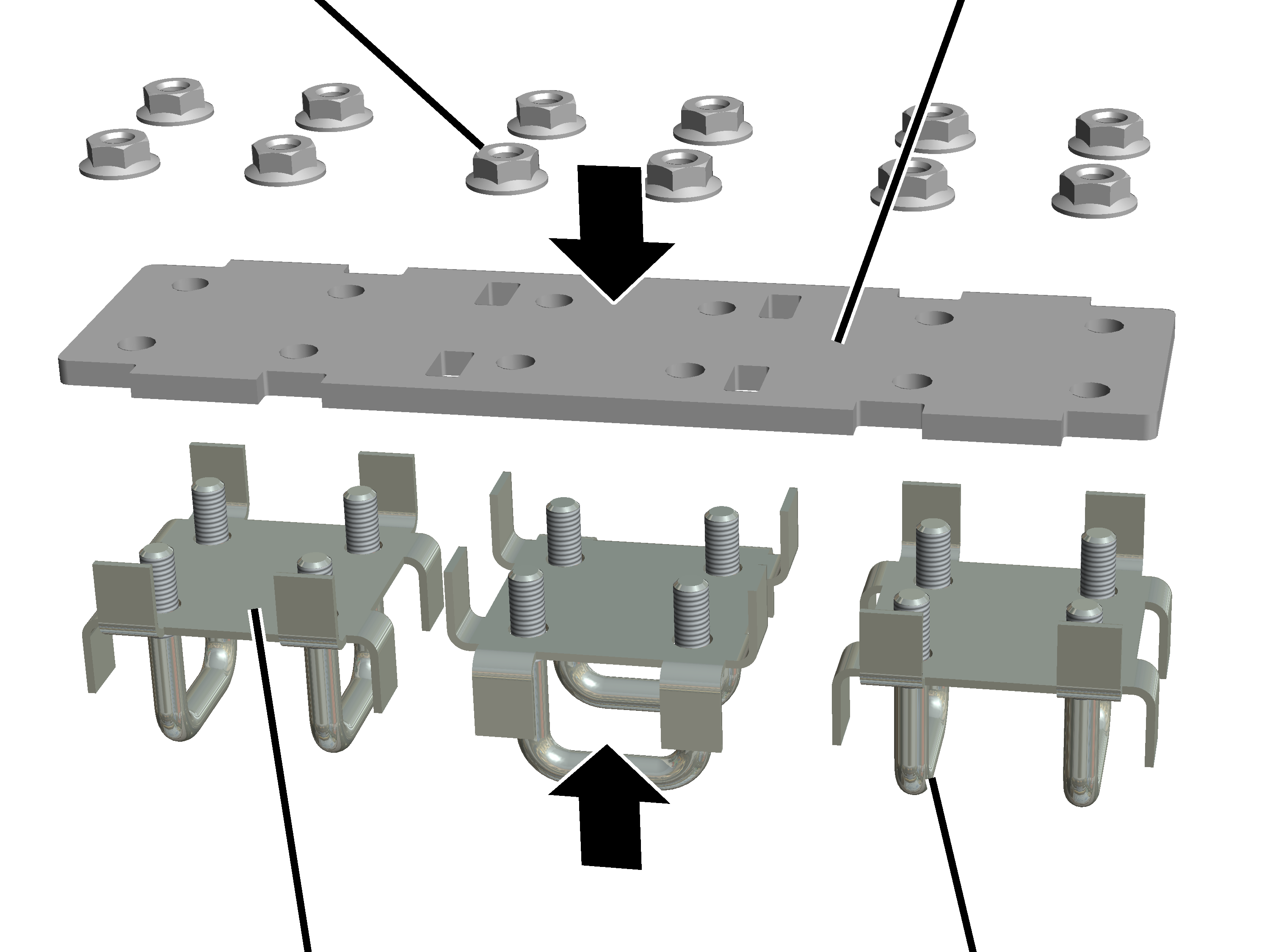 Gewindebügel (6x) mit Rippmuttern (12x) lose zusammenschrauben wie auf dem Bild