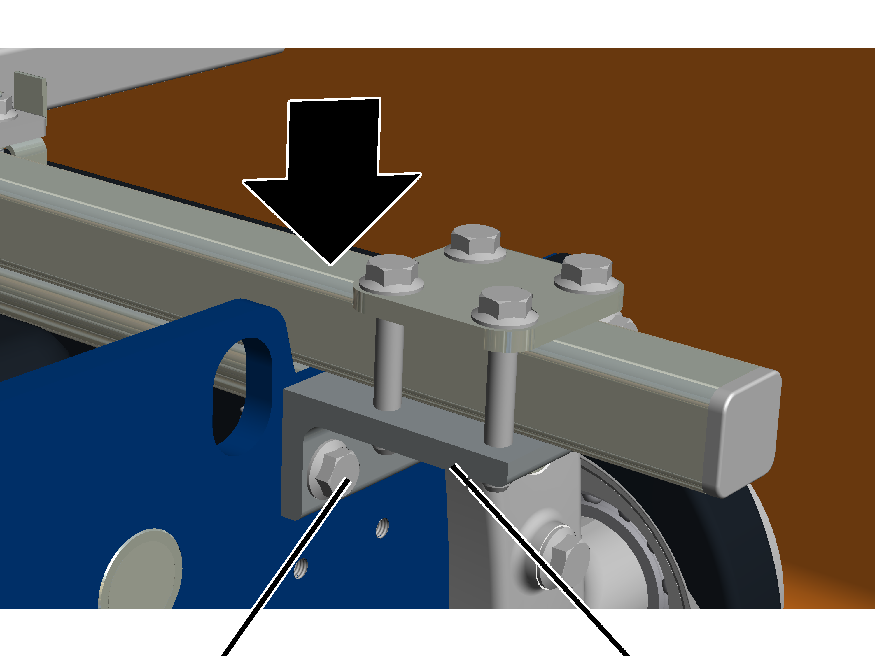 Rippschrauben M8x20 (2x pro Befestigungswinkel) festschrauben. 25 Nm.