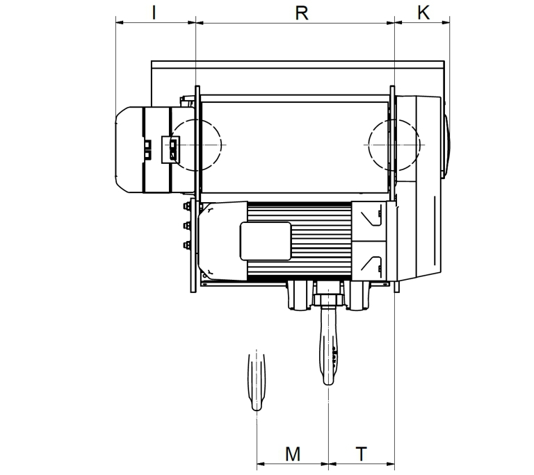 Das Gewicht in Standardausführung ist abhängig von der Ausführung des Hubmotors.