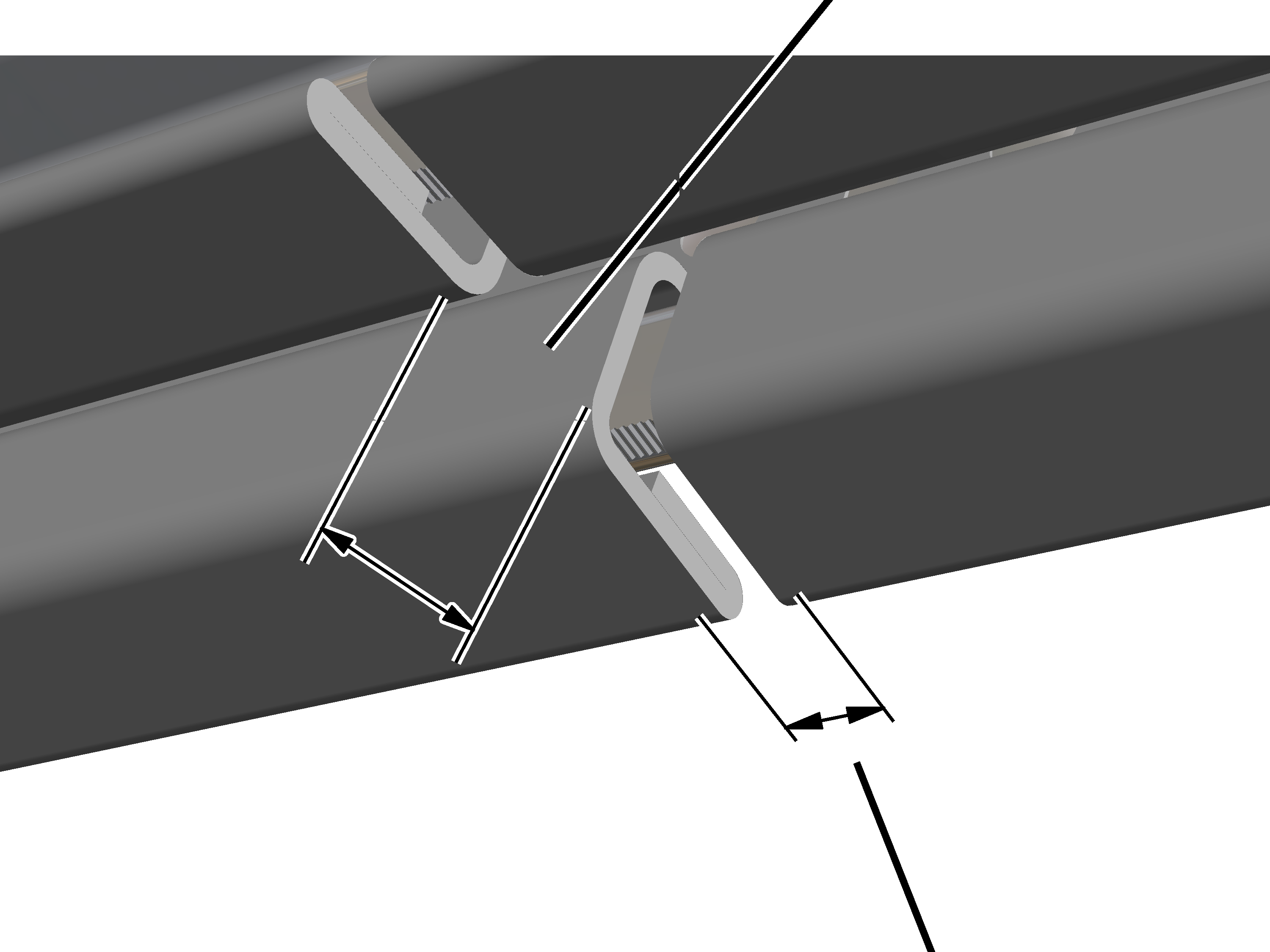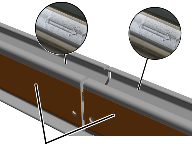 ● In this way, the profile rail sections join at a slight angle to one another. This ensures that despite the camber (the profile rail sections are arched upward slightly) the distance at the bottom between the profile rails is as small as possible.
