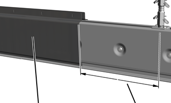 Only with a craneway suspension in the area of a clamping plate: the clamping plates do not need to be inserted exactly centred on the profile joint. The clamping plates can be shifted up to 100 mm to the left or right so that the profile link for the suspension is always at the preferred point.