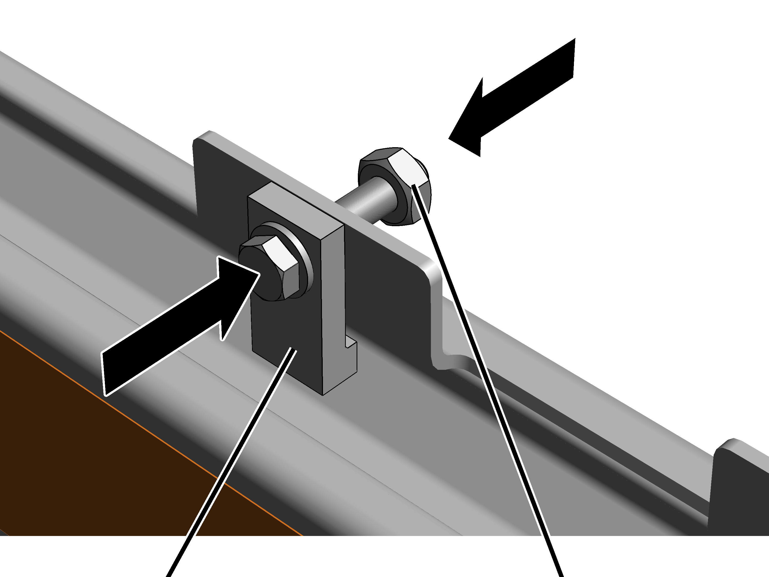 ● The square end of the cup square bolt locks in the clamping plate and therefore cannot turn.