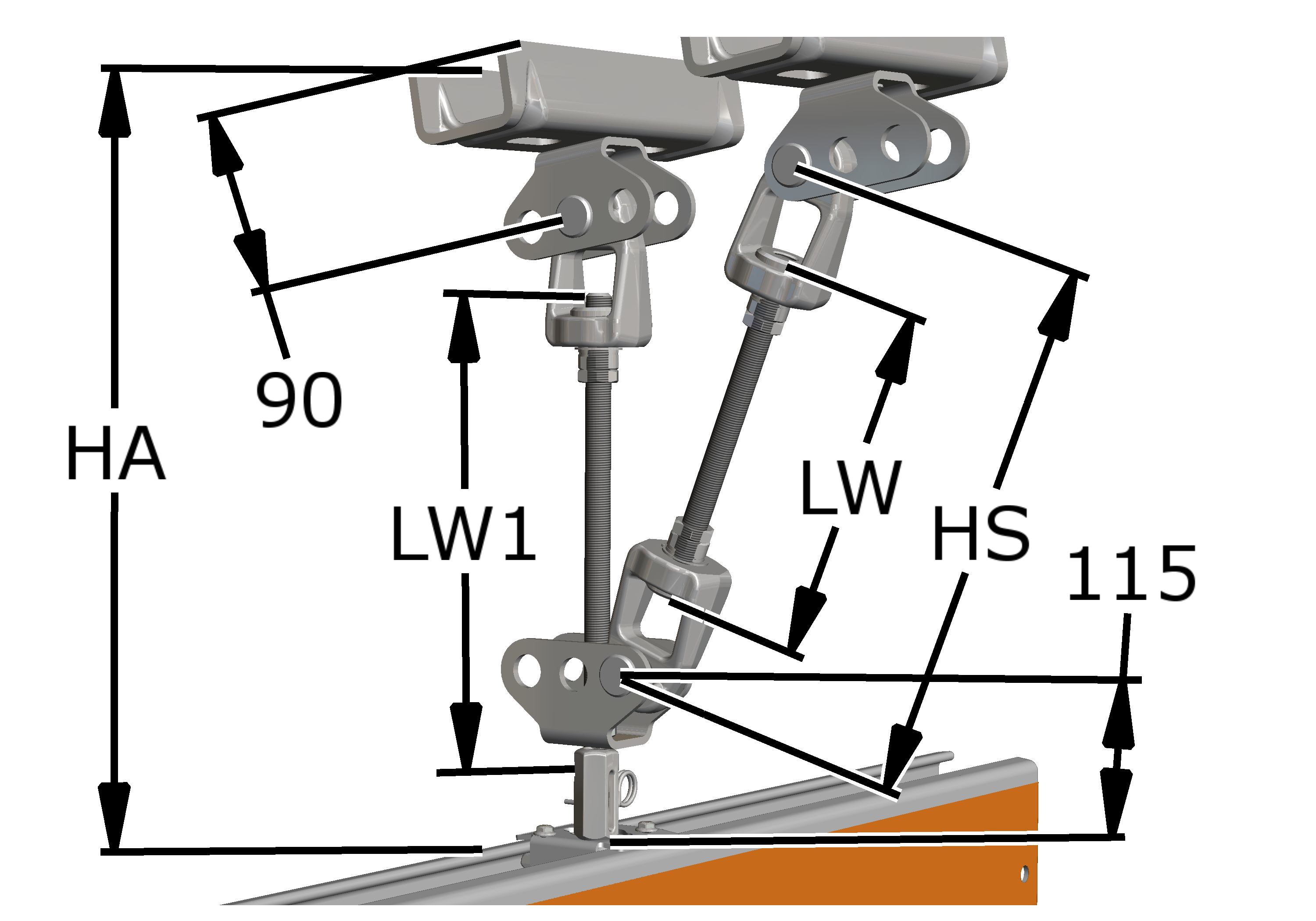 Minimum length of the threaded rod on the vertical load-bearing section (LW1) is 300 mm