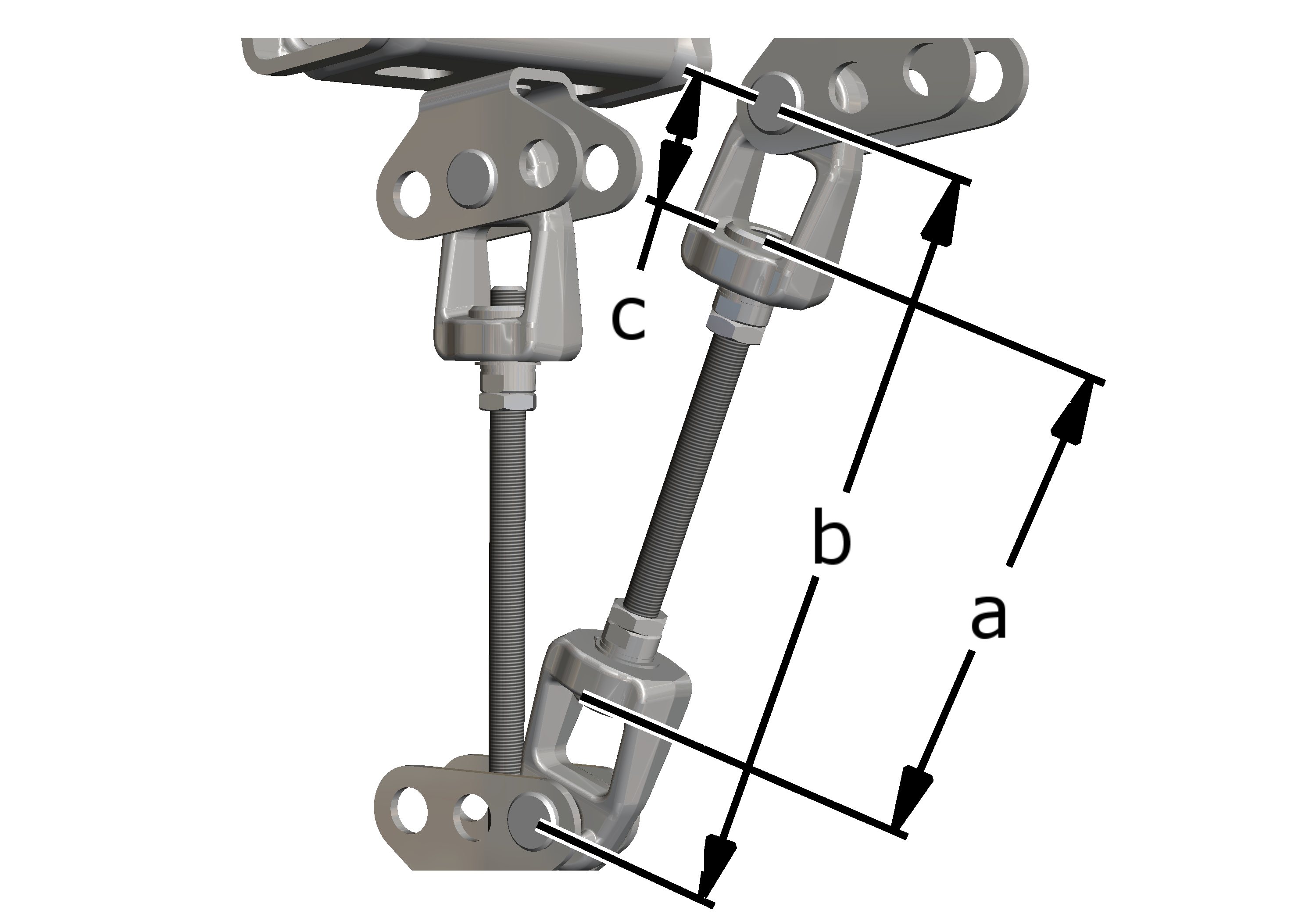 To do this, measure the distance of the two holes (b) between the articulated girders and subtract twice the inner length of the clamping joint (c = 2x 56 mm).
