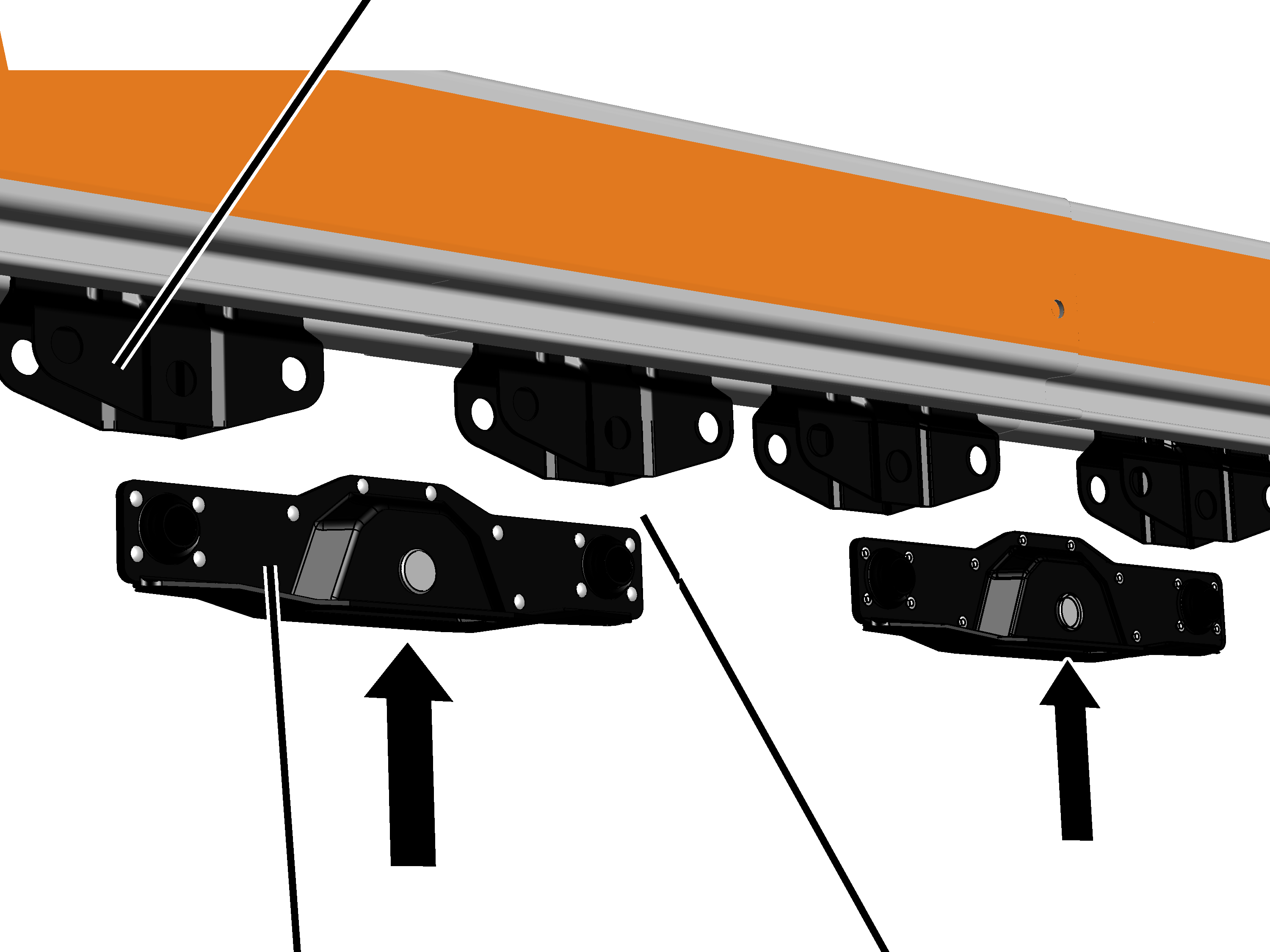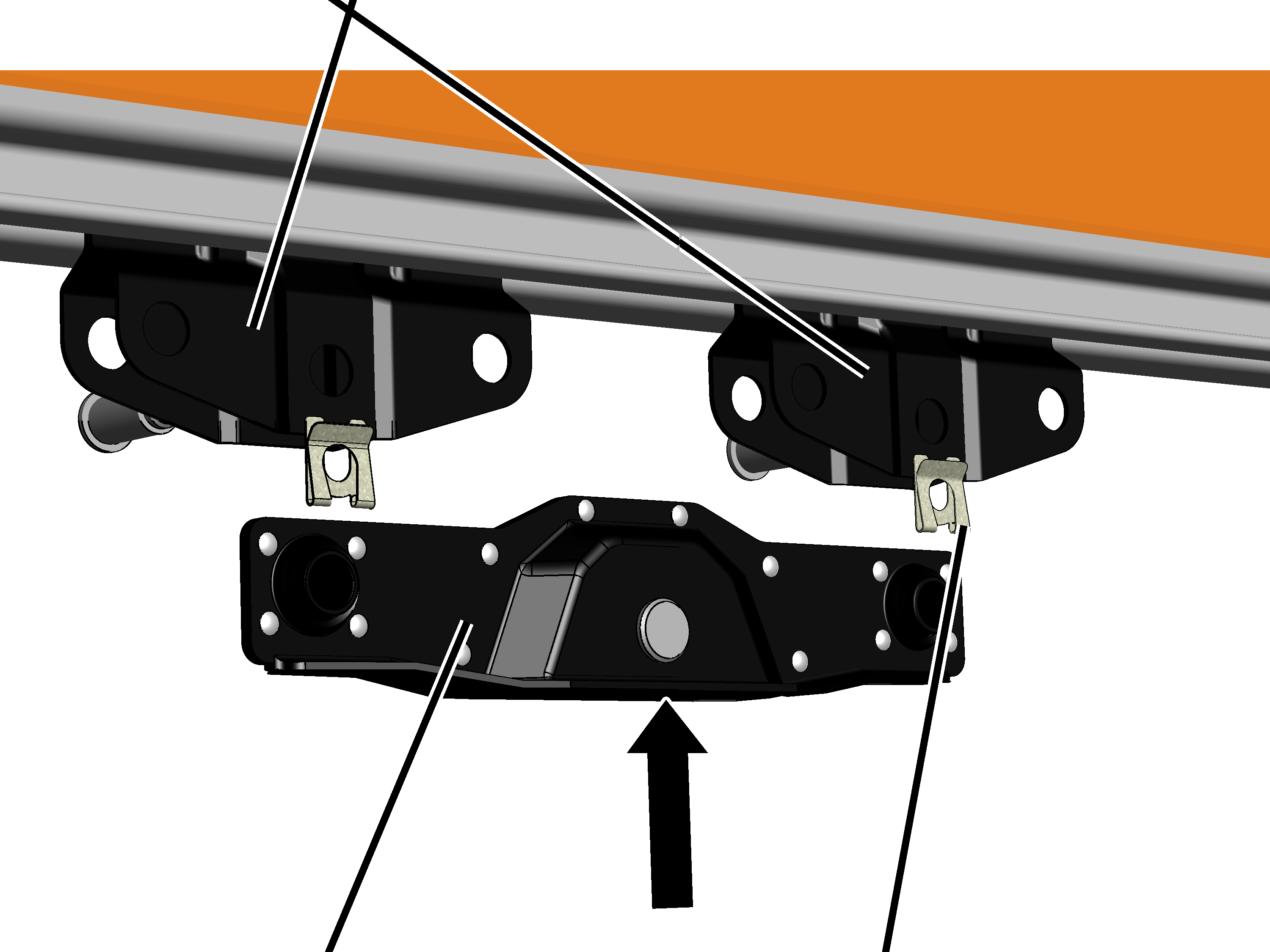 Push the bolts (4x) through the trolleys HB6 and cross bar